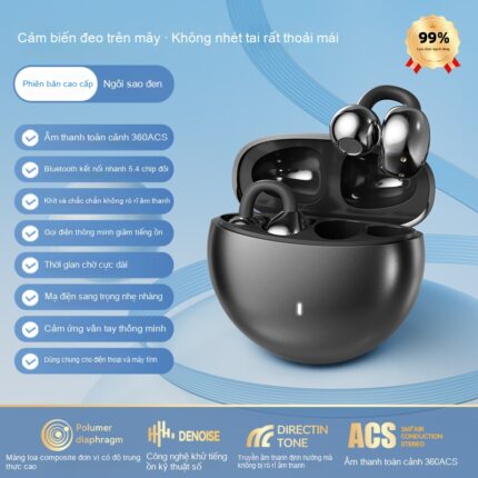 Berlin Voice 2025 Tai nghe Bluetooth dẫn truyền xương mới không dây kẹp tai giá trị cao thể thao chạy bộ chất lượng âm thanh cao – Màu đen