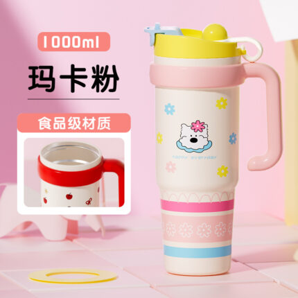 Cốc tấn cánh đồng hoa đập thình thịch Cốc giữ nhiệt xe hơi dung tích lớn cốc nước đá ống hút bé gái cốc nước inox mẫu mới