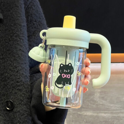 Cốc thủy tinh cốc nước ống hút giá trị cao cho bé gái Cốc đựng trà cầm tay dung tích lớn mới cốc học sinh chịu nhiệt cao