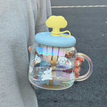 Cốc thủy tinh đựng nước uống gia đình chịu nhiệt độ cao giá trị cao cho bé gái cốc có nắp 2024 cốc sữa đơn giản mẫu mới