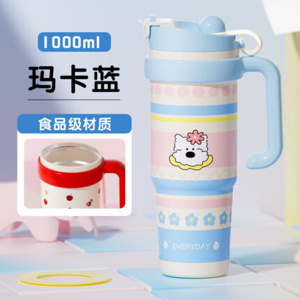 Cốc Cà Phê Bảo quản lạnh kiểu mới 2024 Thiết kế cốc giữ nhiệt gốm sứ Cốc giữ nhiệt cốc nước ống hút dung tích lớn giá trị cao cho nữ