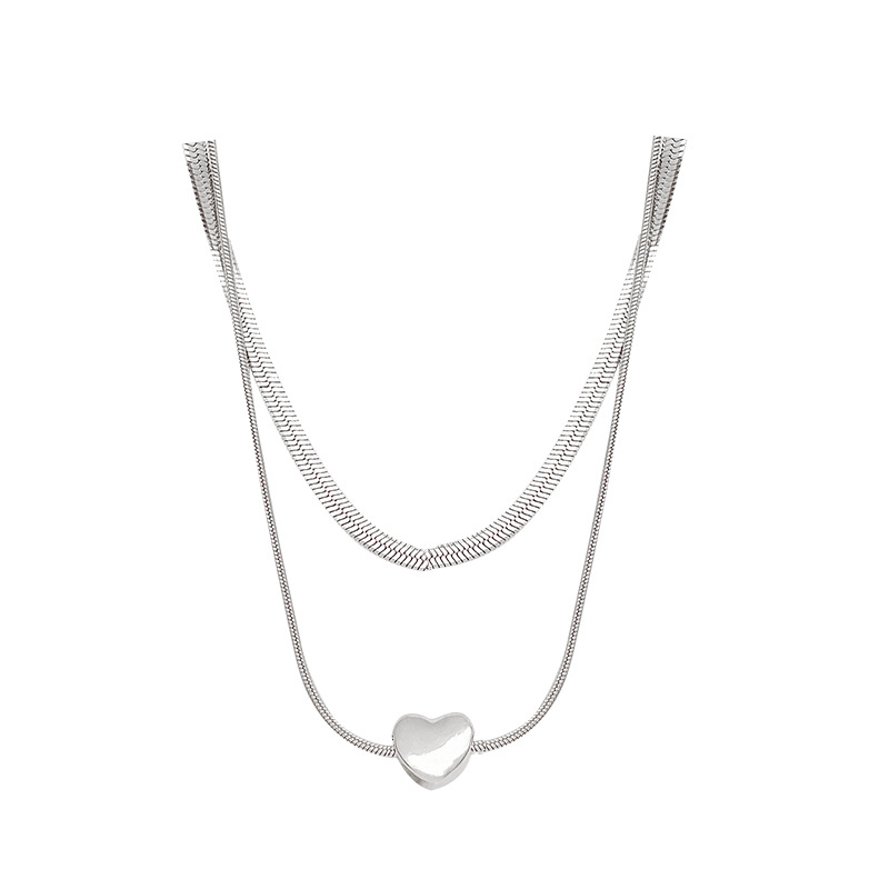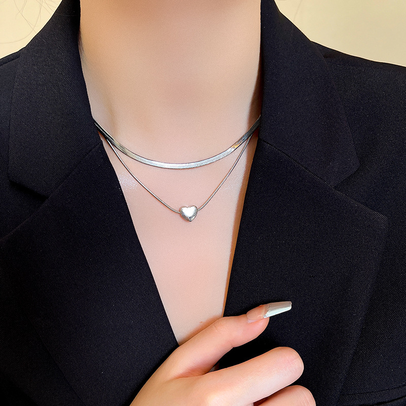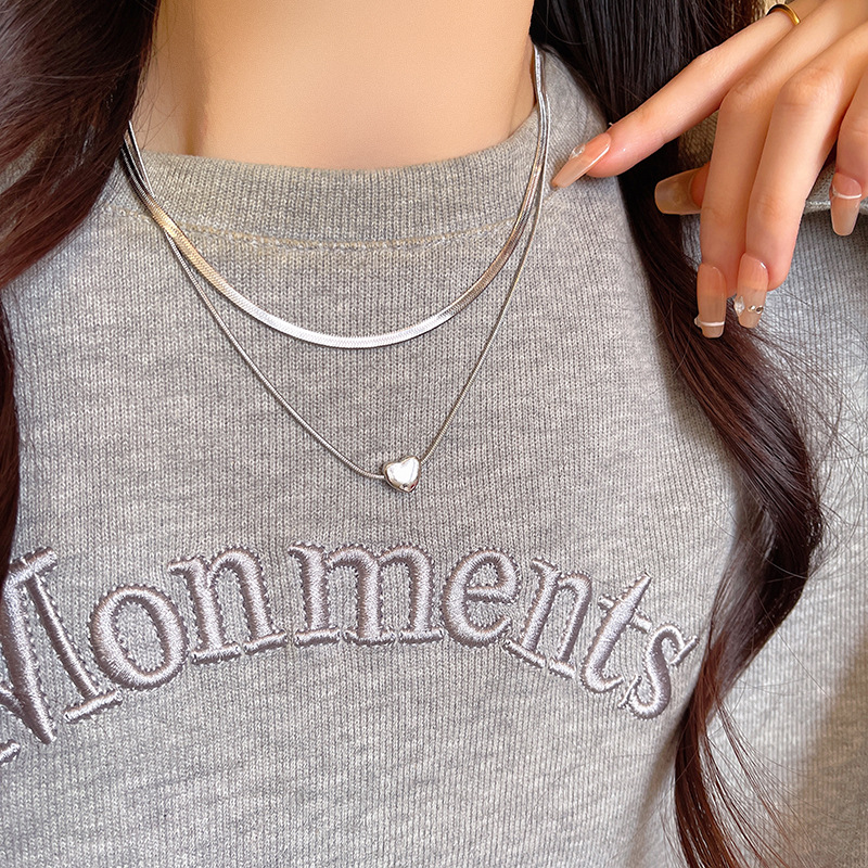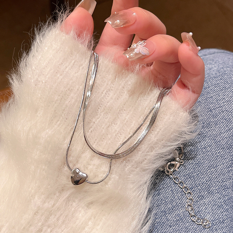 冷淡风简约双层叠戴爱心锁骨链轻奢小众高级感蛇骨链毛衣卫衣链