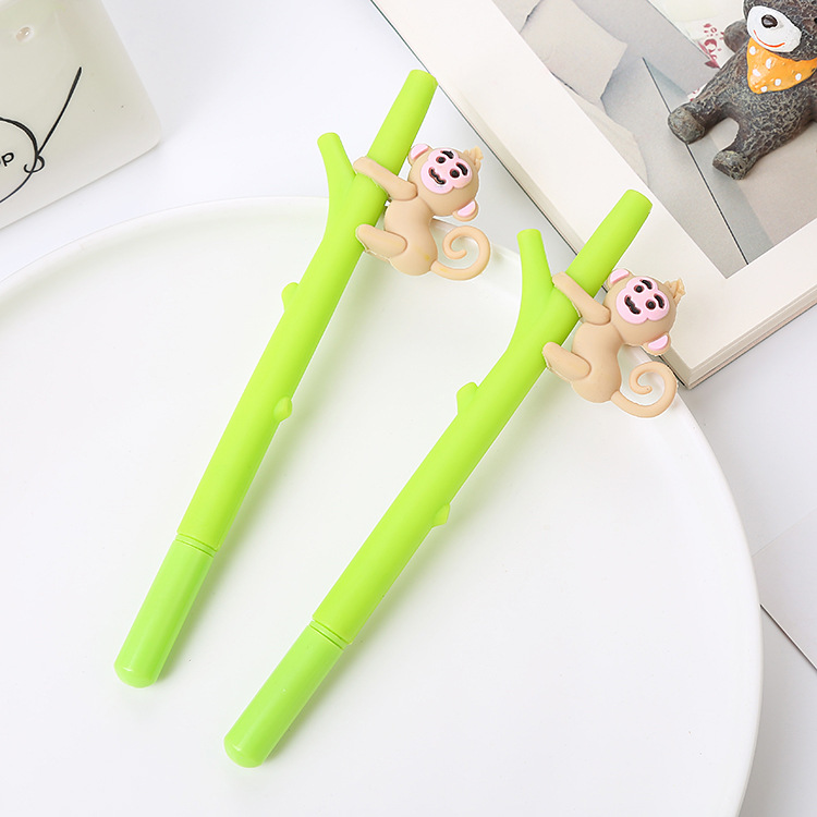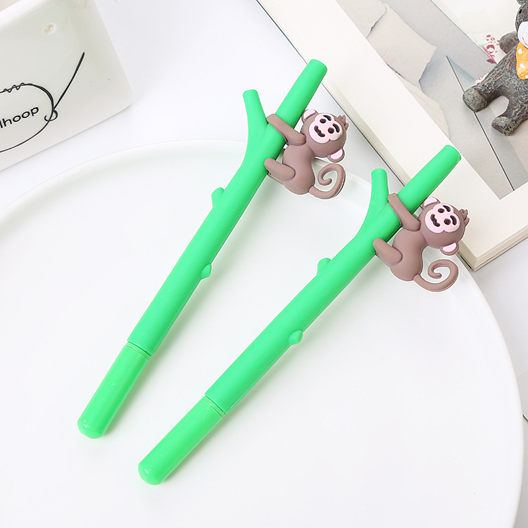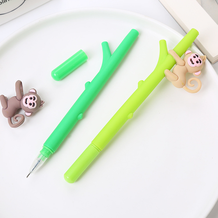 Bút gel mềm sáng tạo bút Gel hoạt hình khỉ trên cây bút ký dễ thương học văn phòng phẩm học sinh thi bút nước màu đen