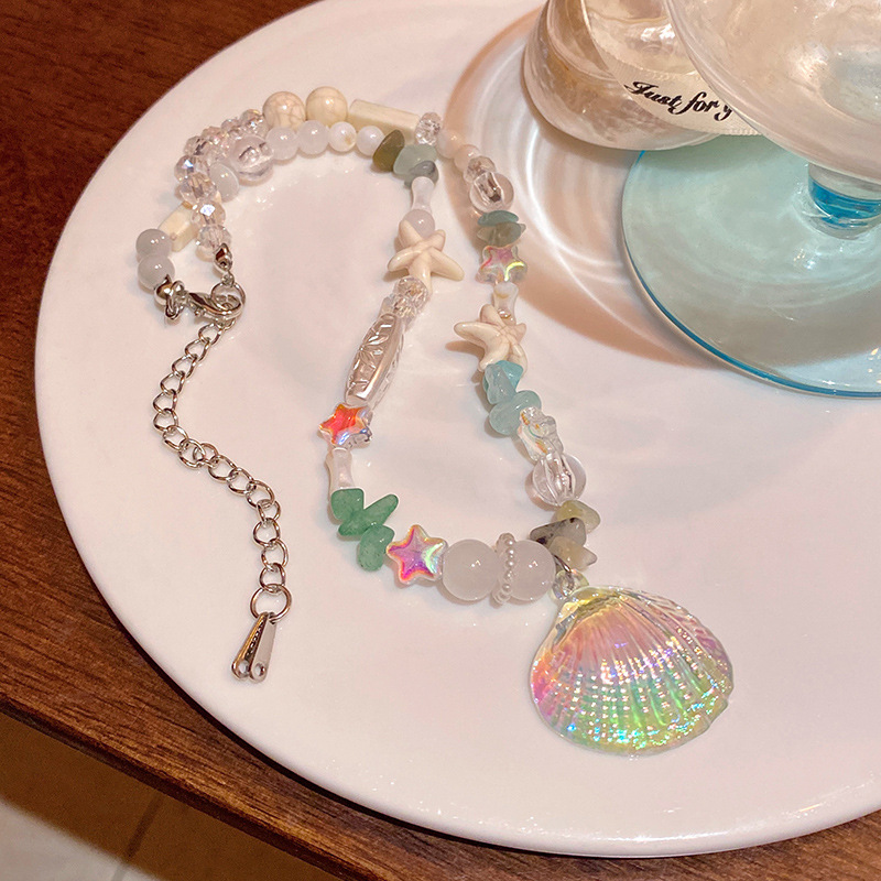 多巴胺珍珠贝壳海星项链海边百搭度假风锁骨链时尚设计感项饰批发
