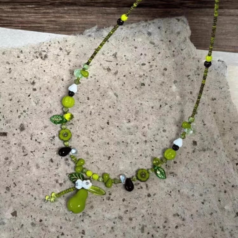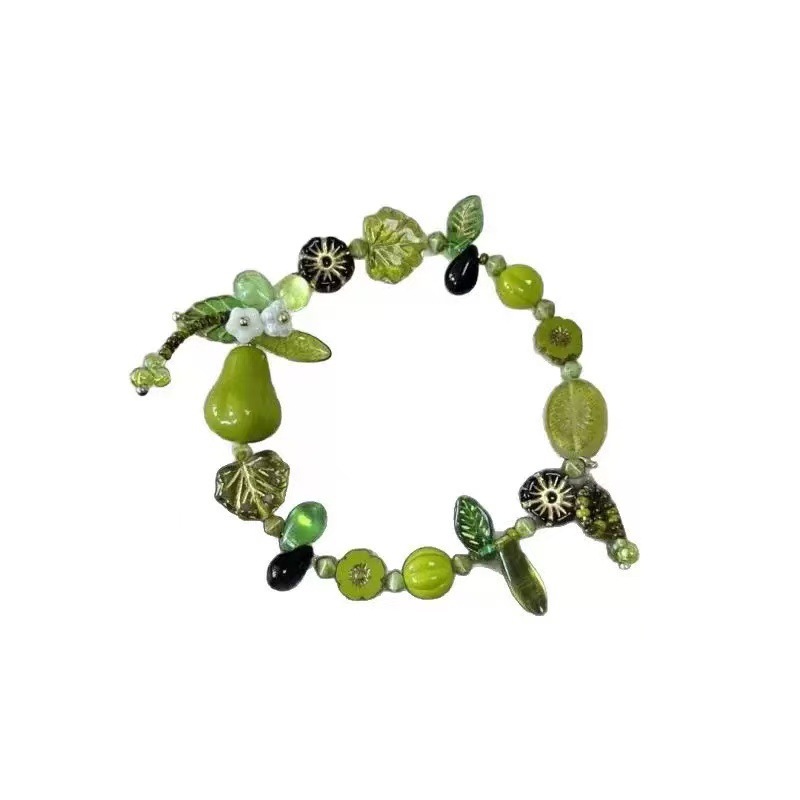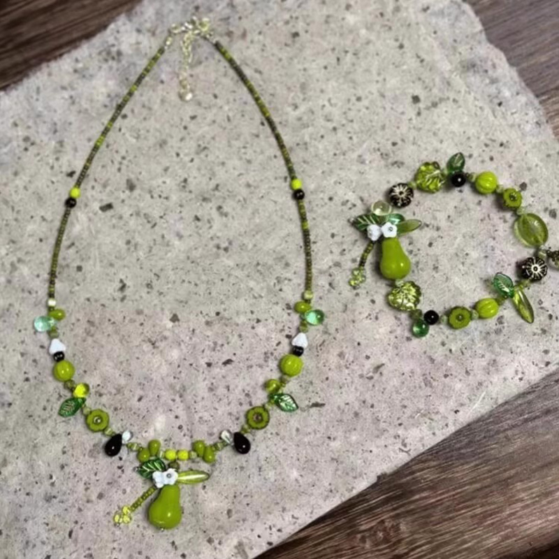 新款绿色串珠自然植物系设计手链手串小众高级感森系项链戒指女潮