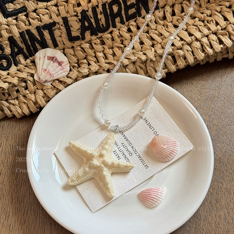 时尚气质多巴胺长款串珠海星项链女夏天海边度假风配饰夸张锁骨链