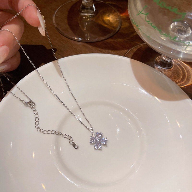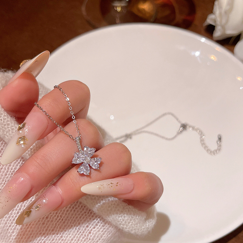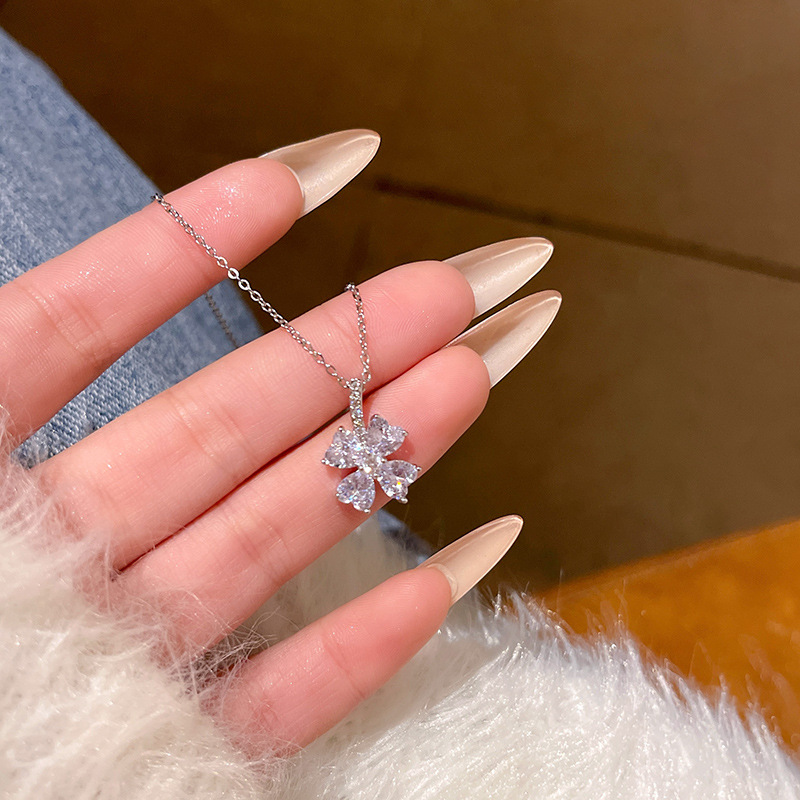 春夏超闪锆石花朵钛钢项链女轻奢小众高级感百搭气质钛钢锁骨链