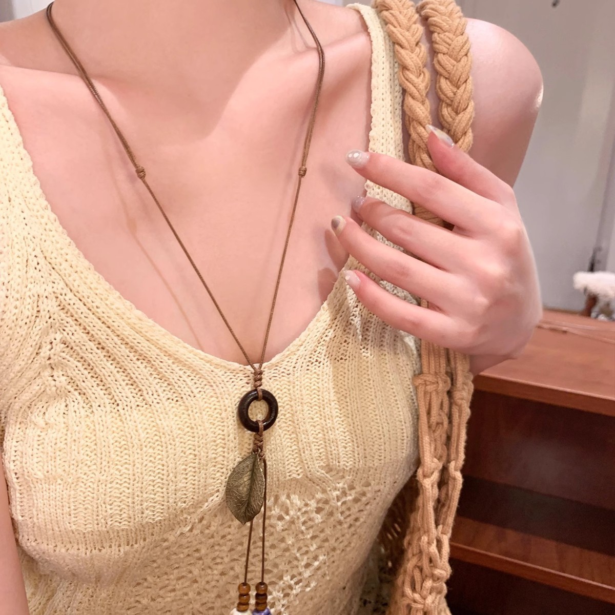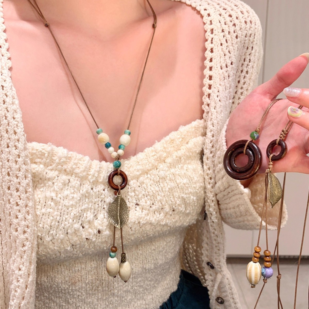 海边度假新中式禅意陶瓷吊坠项链女波西米亚民族风长款配饰挂绳