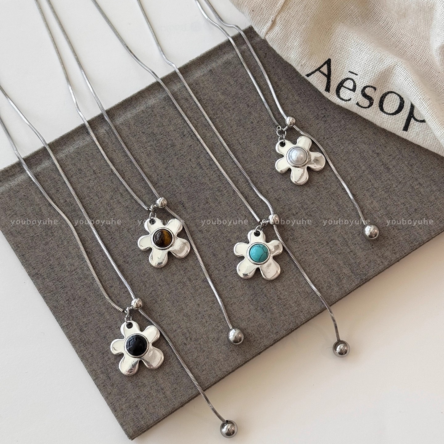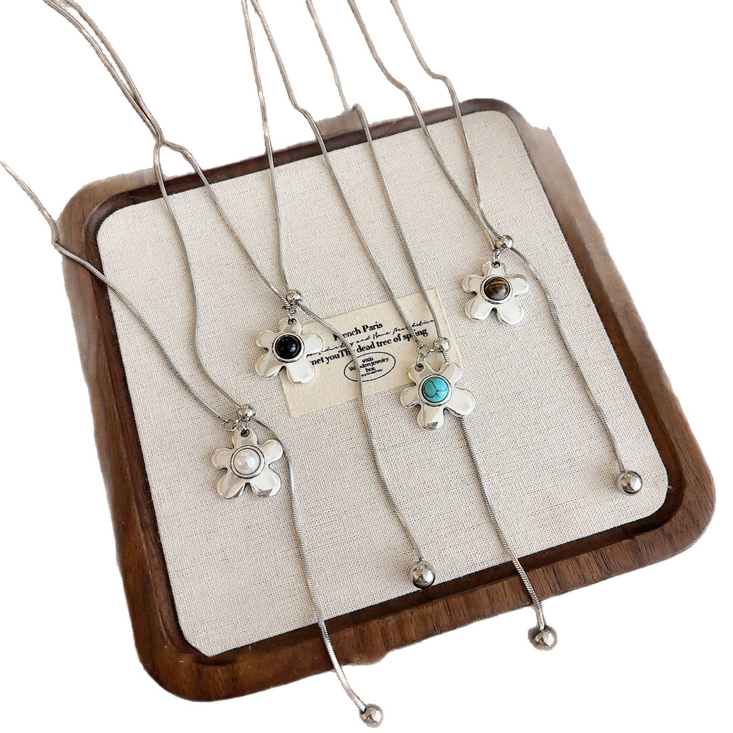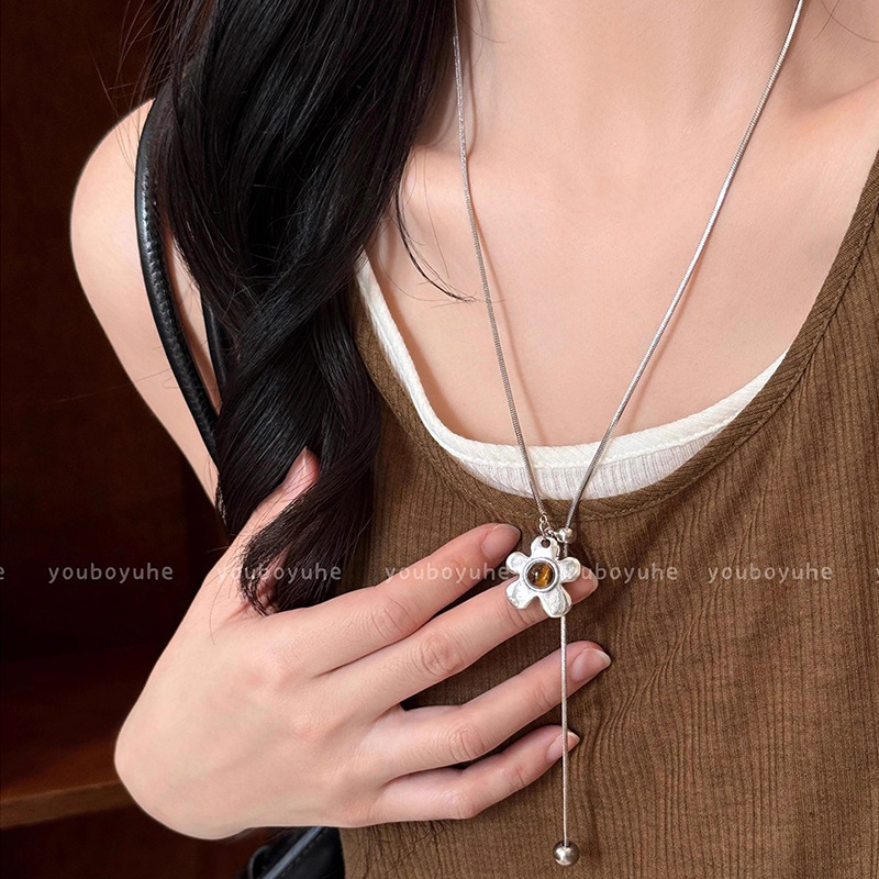港风复古虎眼石花朵抽拉式项链女2025年秋冬款新款毛衣卫衣链批发
