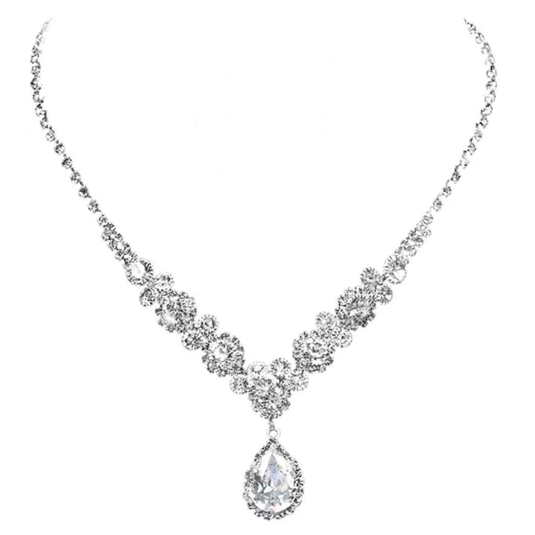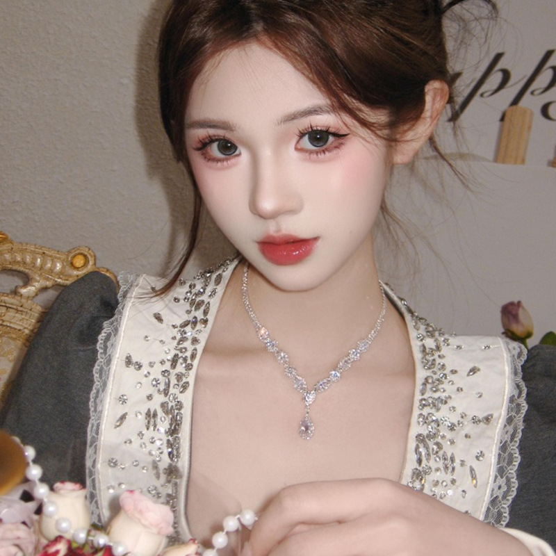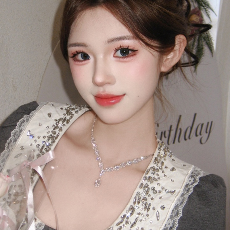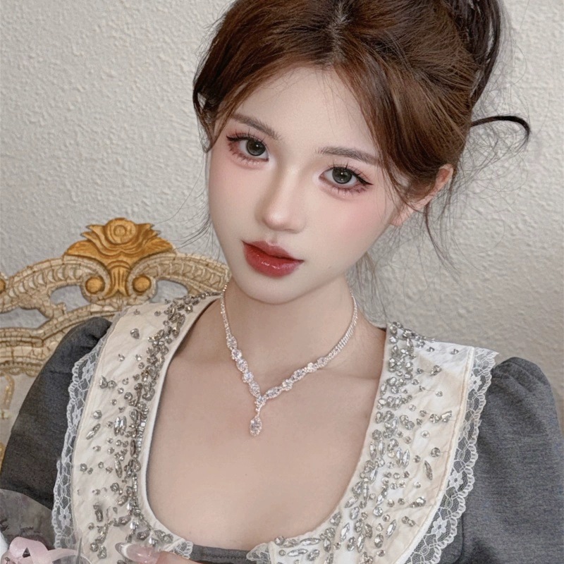 爆闪锆石水滴形项链女韩系网红名媛同款高级感锁骨链长款流苏颈链