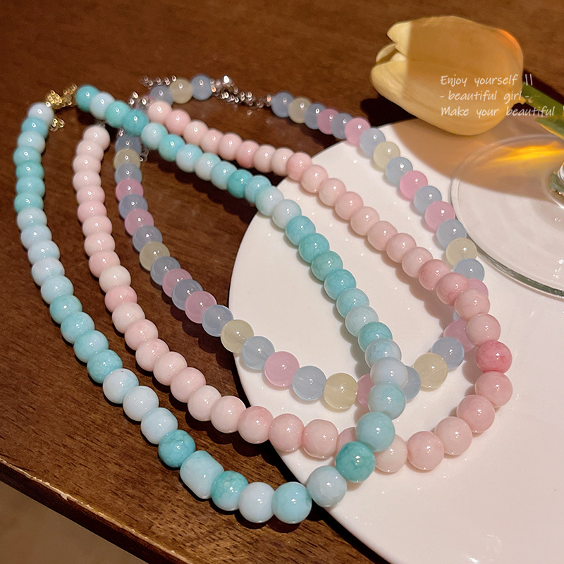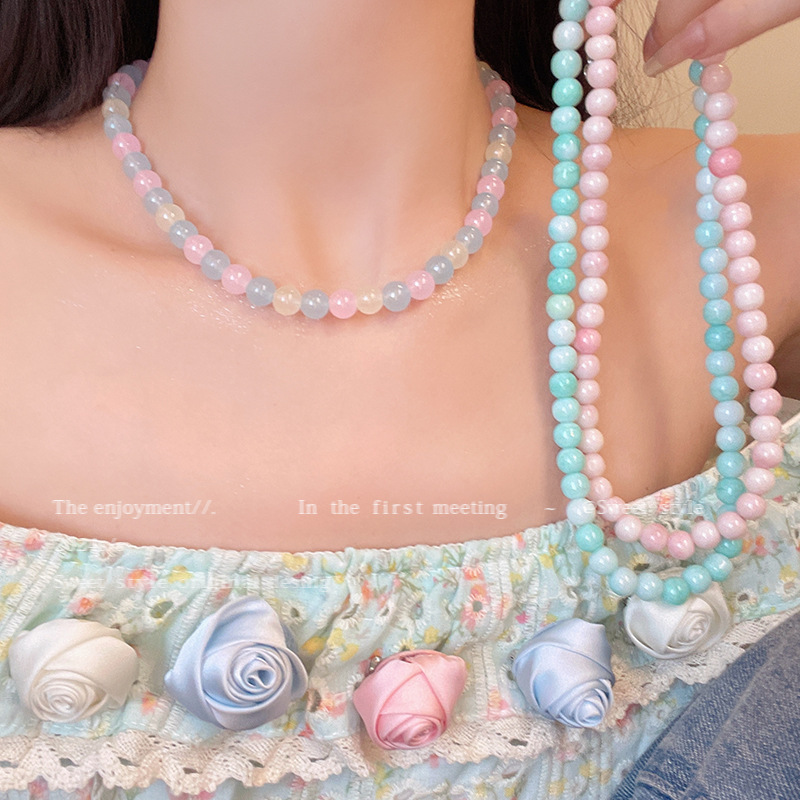 甜美彩色多巴胺串珠项链女轻奢小众闺蜜礼物可爱锁骨链尽量批发