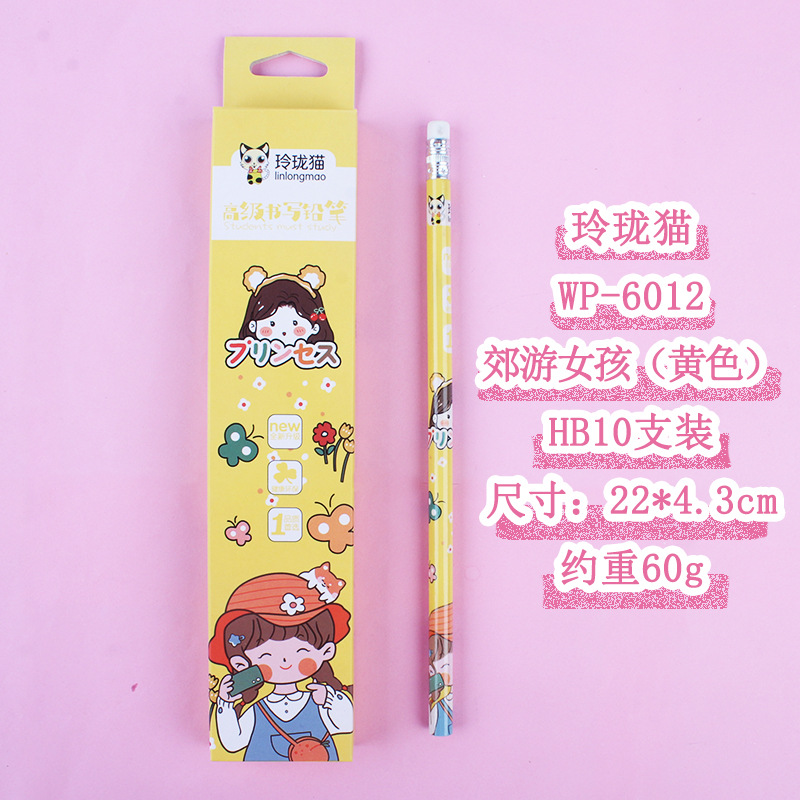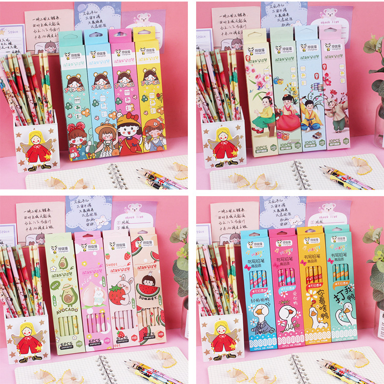 Bút chì đóng hộp Văn phòng phẩm học sinh sáng tạo Bút chì HB có tẩy Học sinh tiểu học viết và vẽ bút phác thảo 10 cái 6 cái