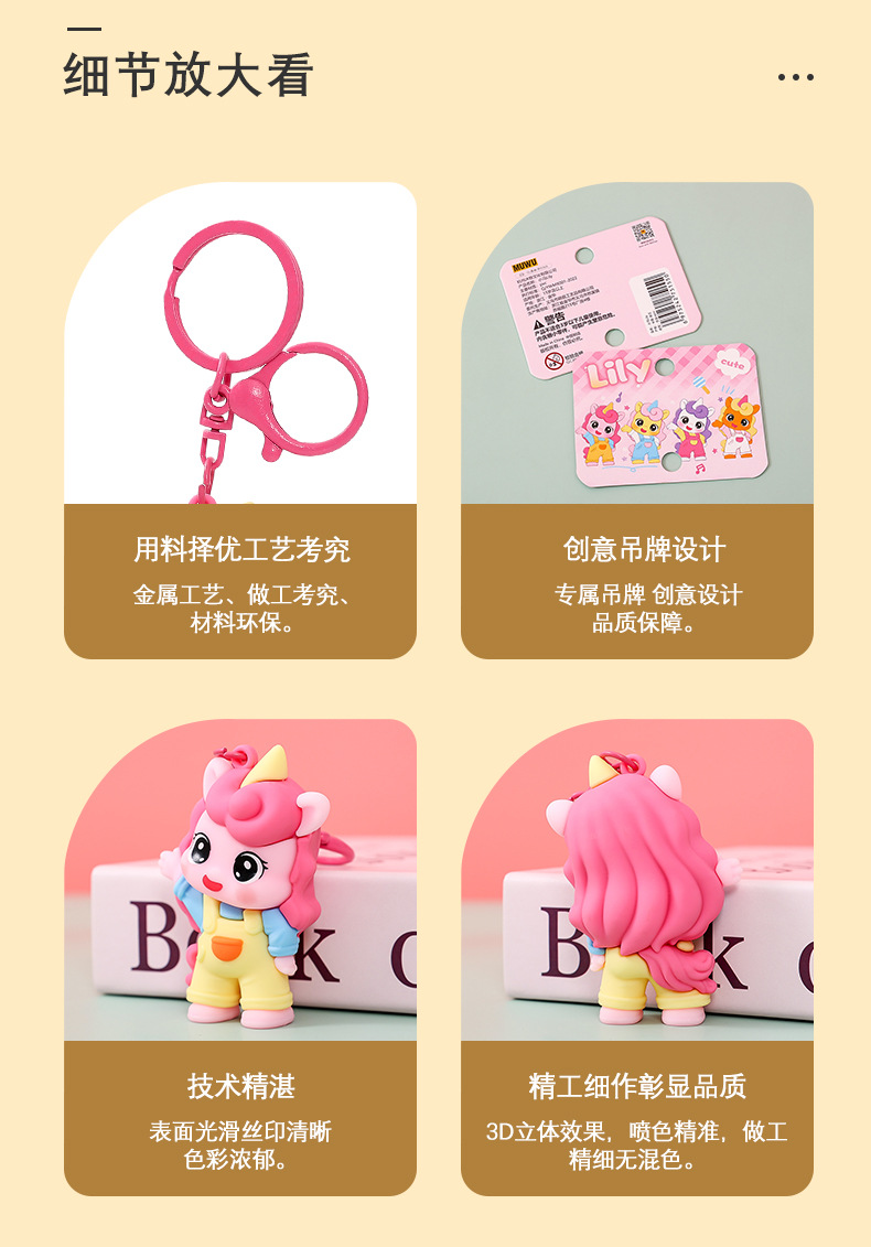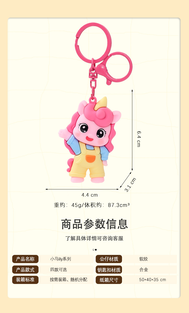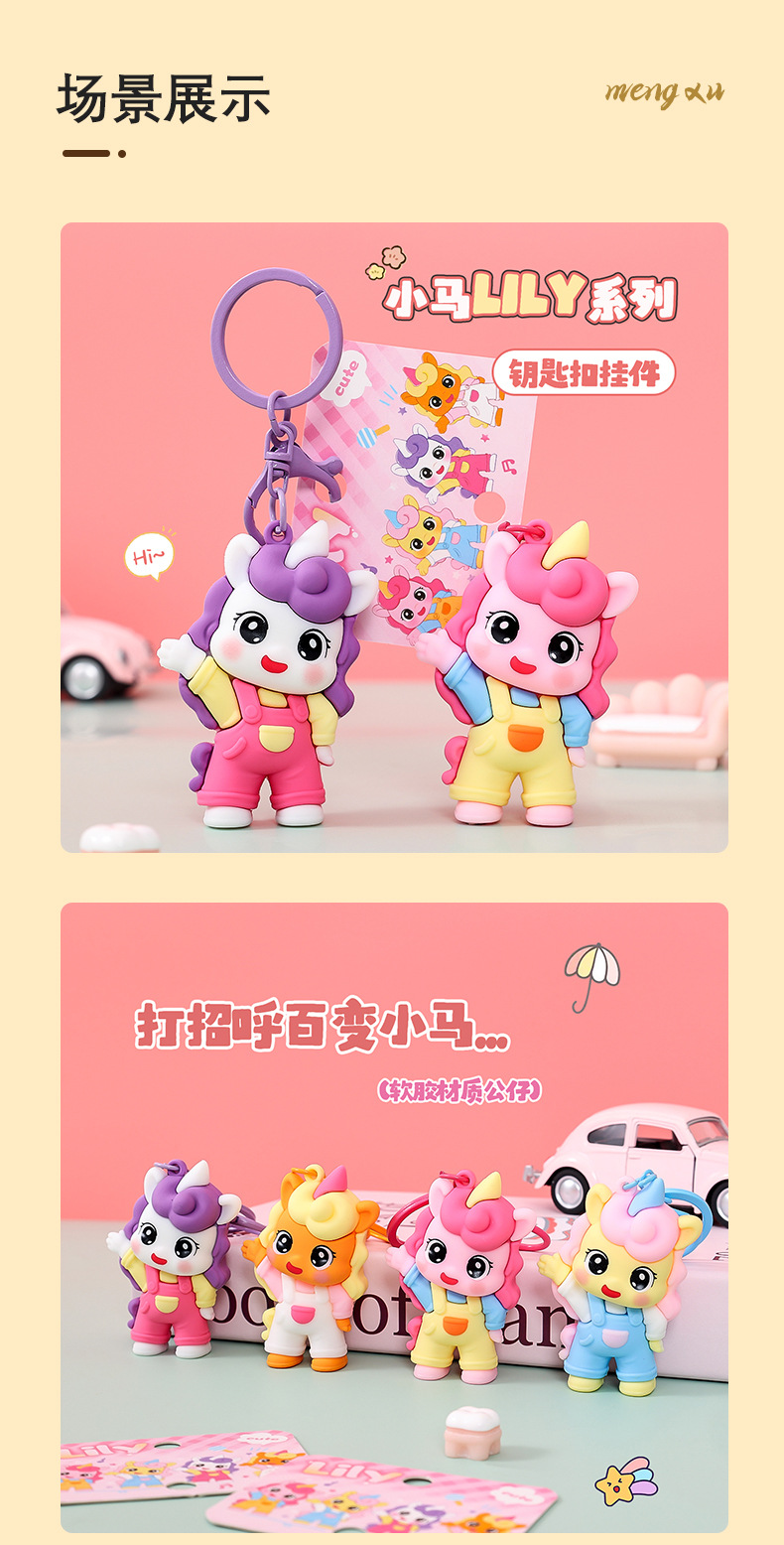 萌叙新款可爱小马lily钥匙扣挂件滴胶公仔精致学生包包挂件小礼品