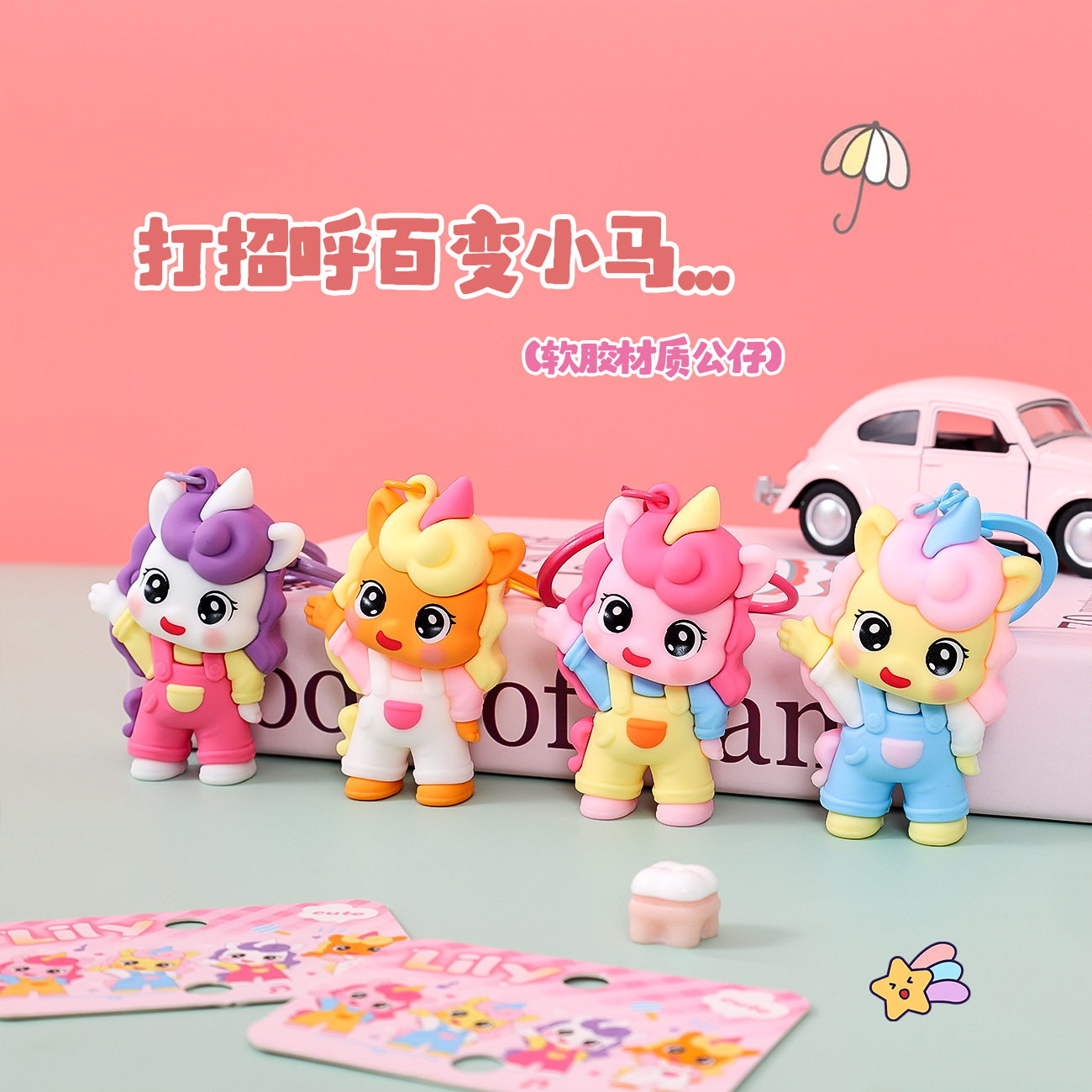 萌叙新款可爱小马lily钥匙扣挂件滴胶公仔精致学生包包挂件小礼品