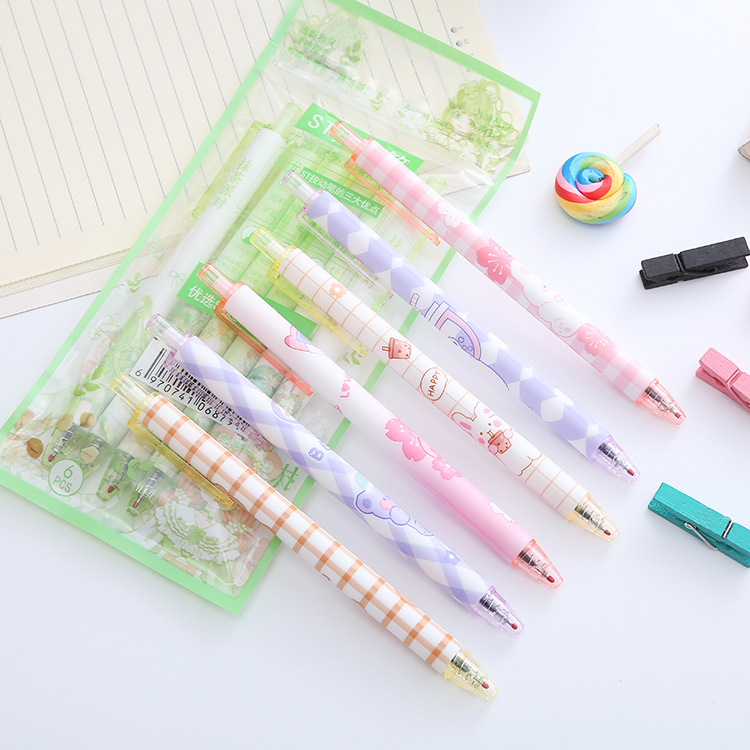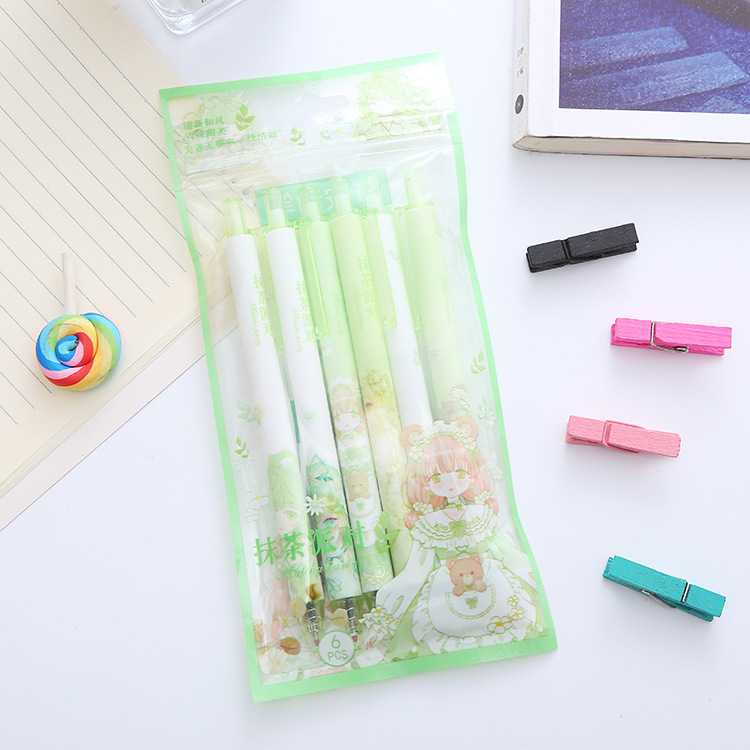Bút Gel ấn Matcha túi, bút nước ép màu Hồng xanh lá cây trái tim cô gái