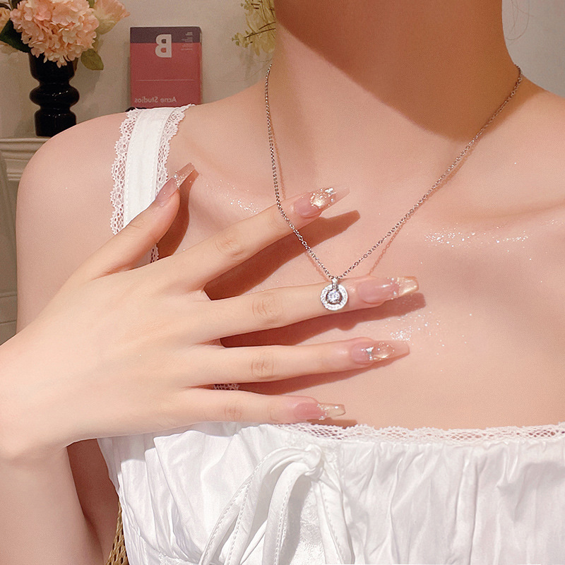 跳动的心灵动锆石吊坠项链轻奢小众高级感爆闪满钻钛钢锁骨链颈链
