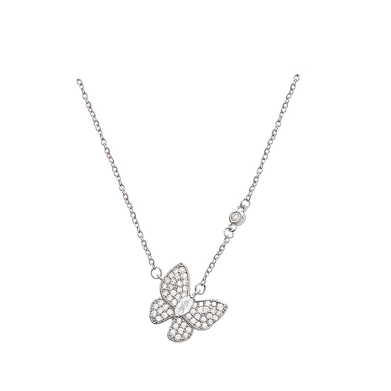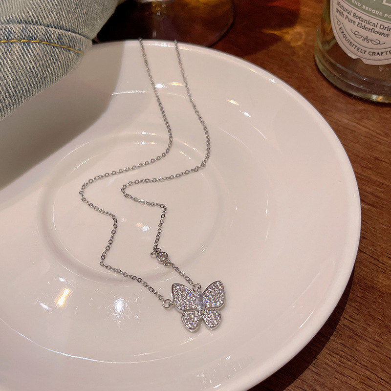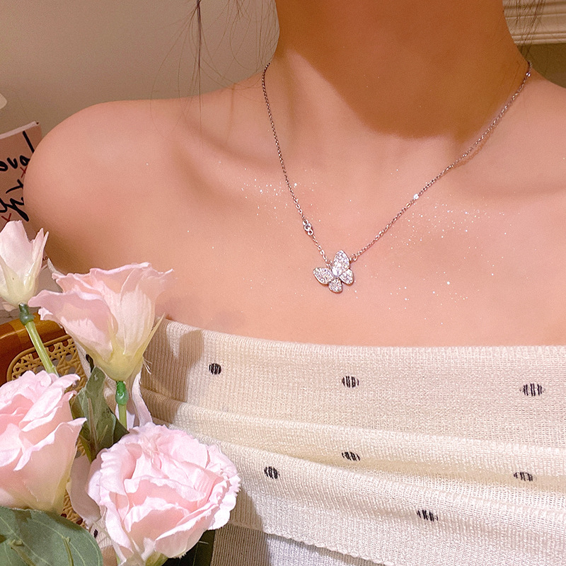轻奢小众精致微镶满钻蝴蝶吊坠钛钢项链时尚百搭气质高级感锁骨链