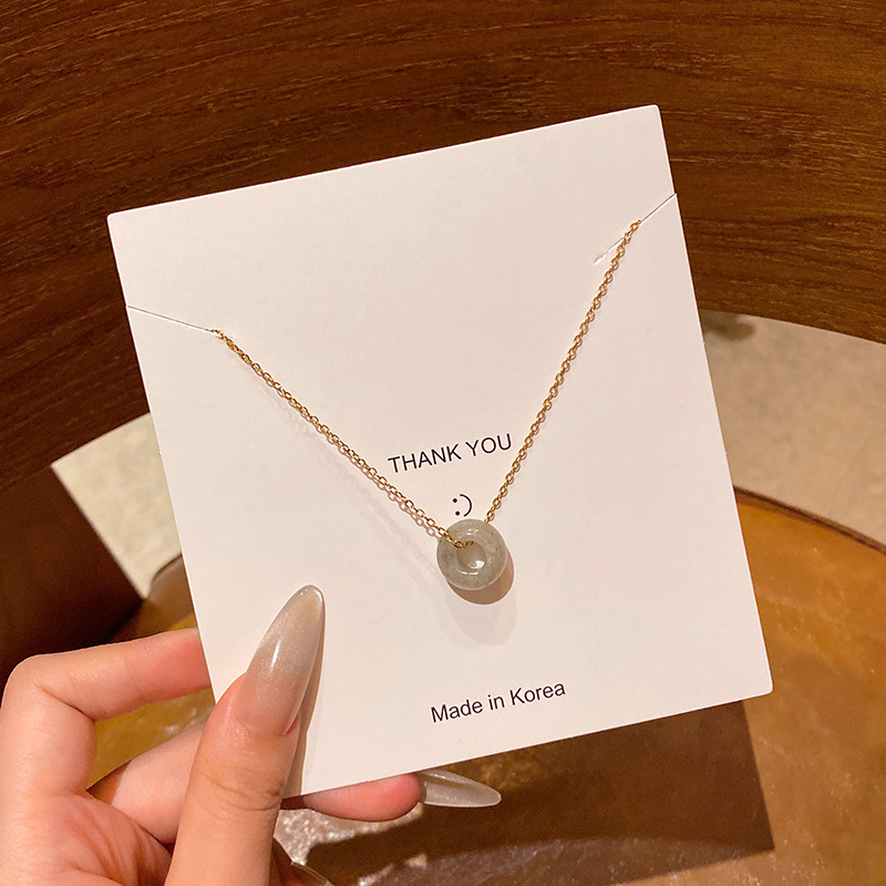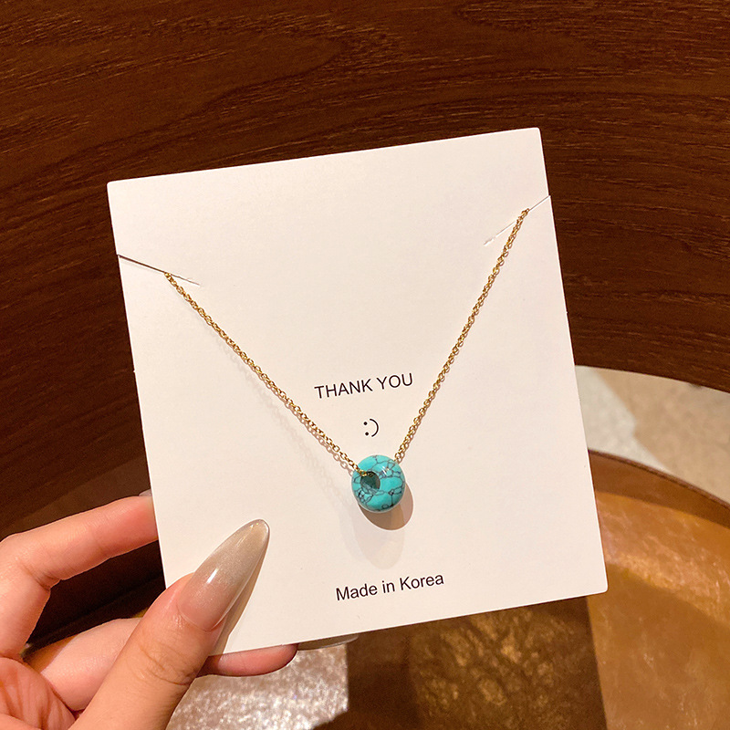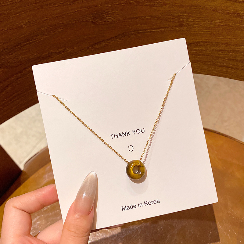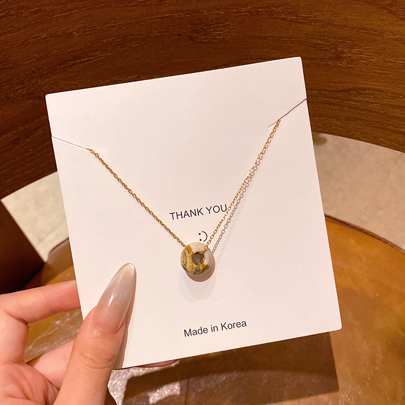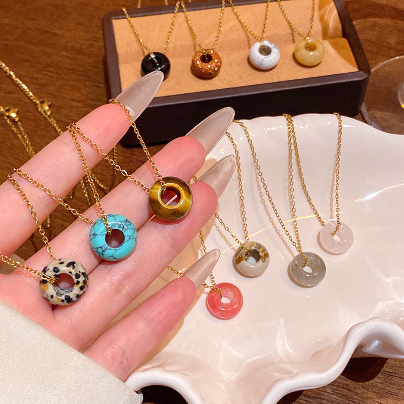 韩系小众高级感天然石吊坠项链女真金电镀时尚气质钛钢锁骨链颈链