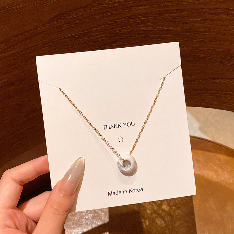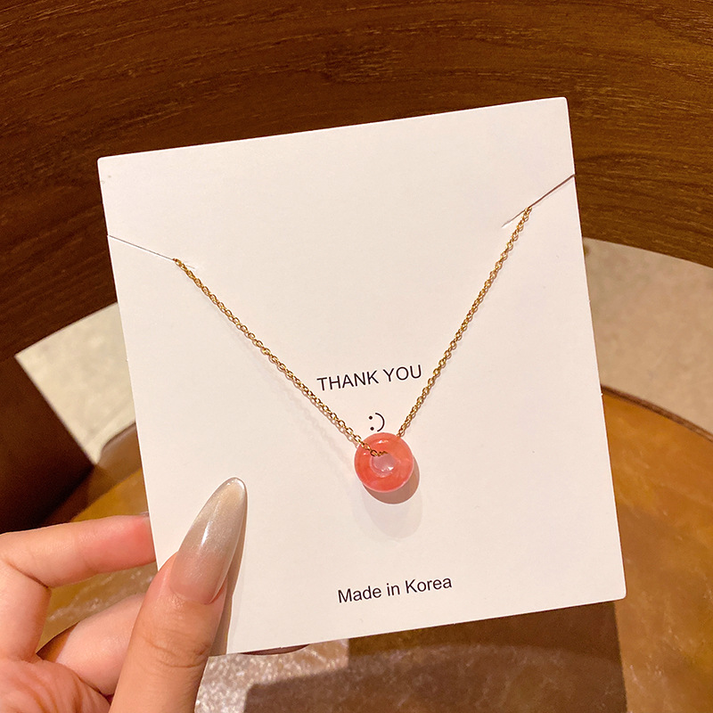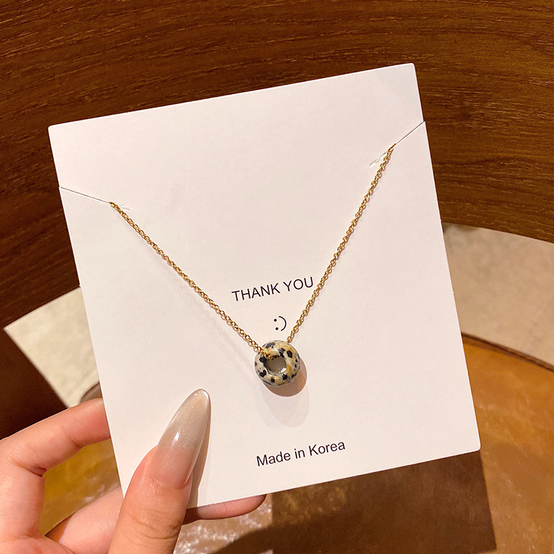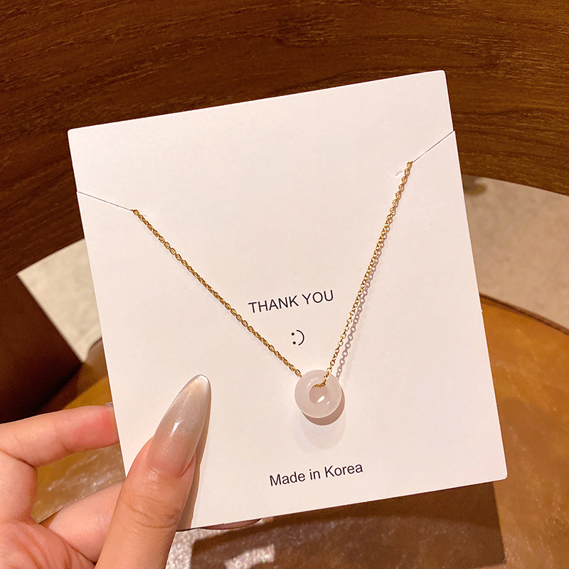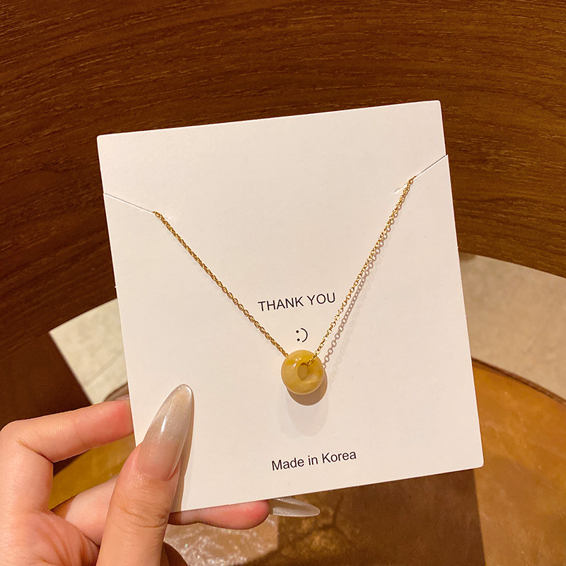 韩系小众高级感天然石吊坠项链女真金电镀时尚气质钛钢锁骨链颈链