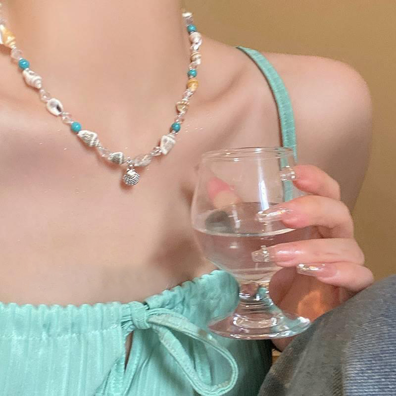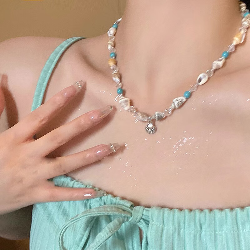 韩系爆款贝壳串珠项链女ins潮海边度假海螺锁骨链网红同款颈链