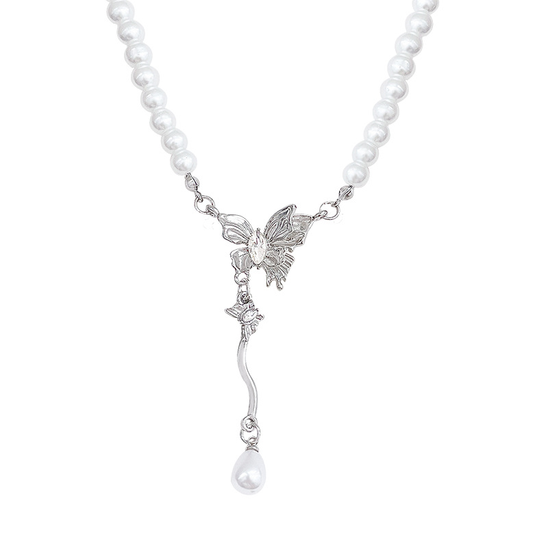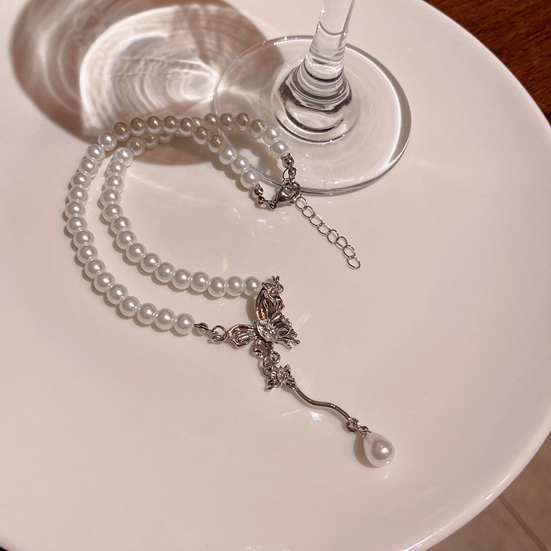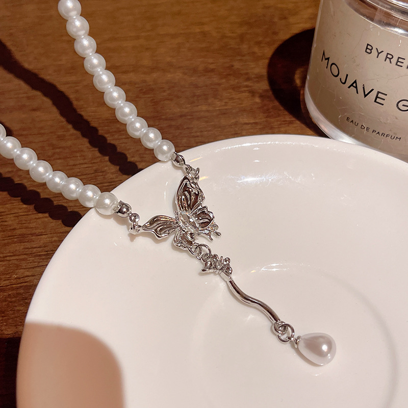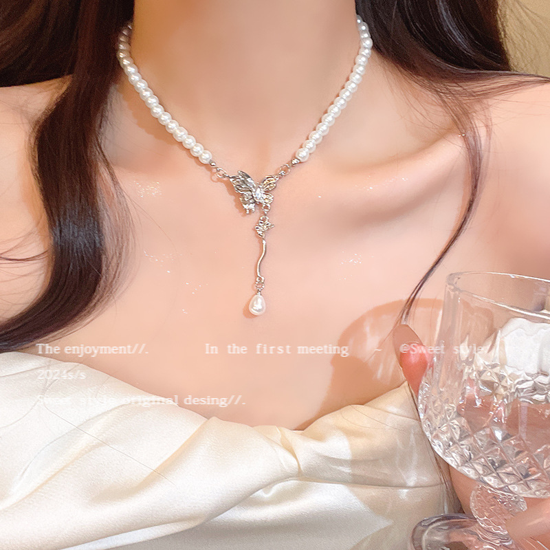 韩系超仙气质长款流苏蝴蝶项链女轻奢小众高级感珍珠锁骨链颈链