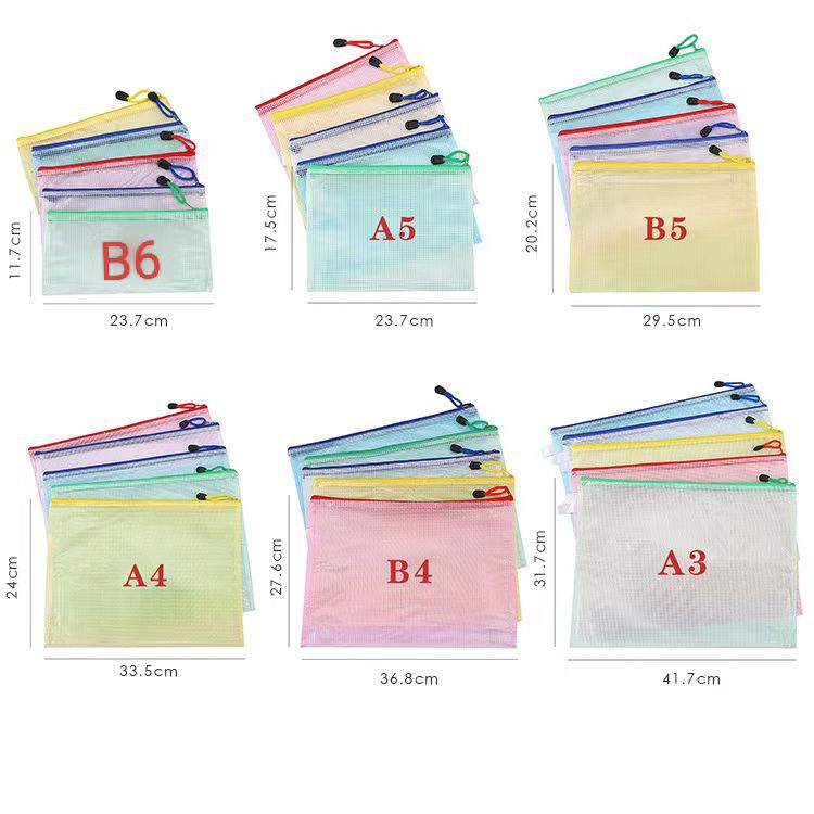 Túi đựng tài liệu dây kéo lưới A4 túi đựng bút chống nước văn phòng phẩm học sinh sáng tạo túi đựng tài liệu trong suốt văn phòng Túi đựng hóa đơn