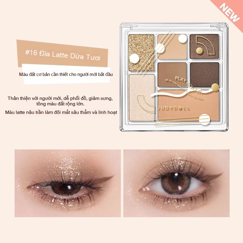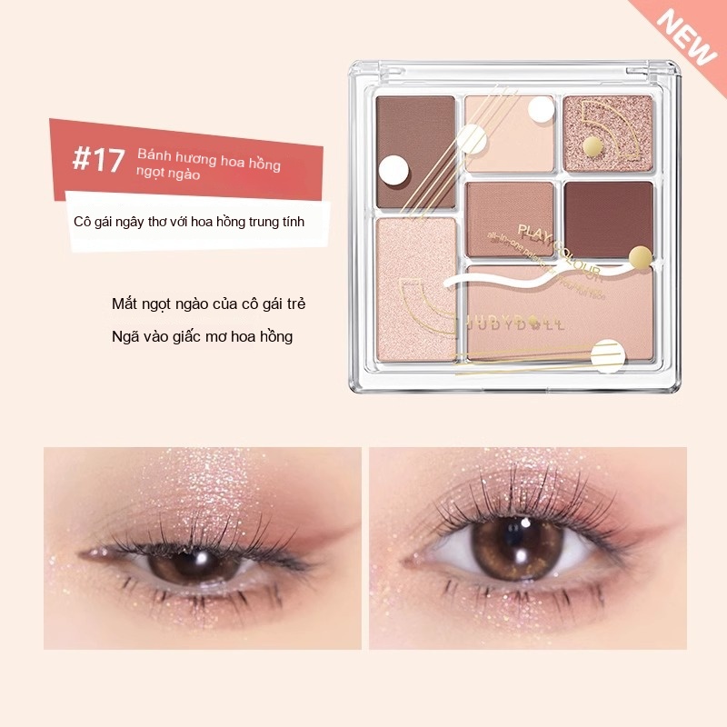 Bảng phấn mắt 7 màu Judydoll Orange Tangram Bảng Phấn mắt bảy màu vui nhộn Mờ má hồng đất nổi bật nữ đi làm màu đa năng