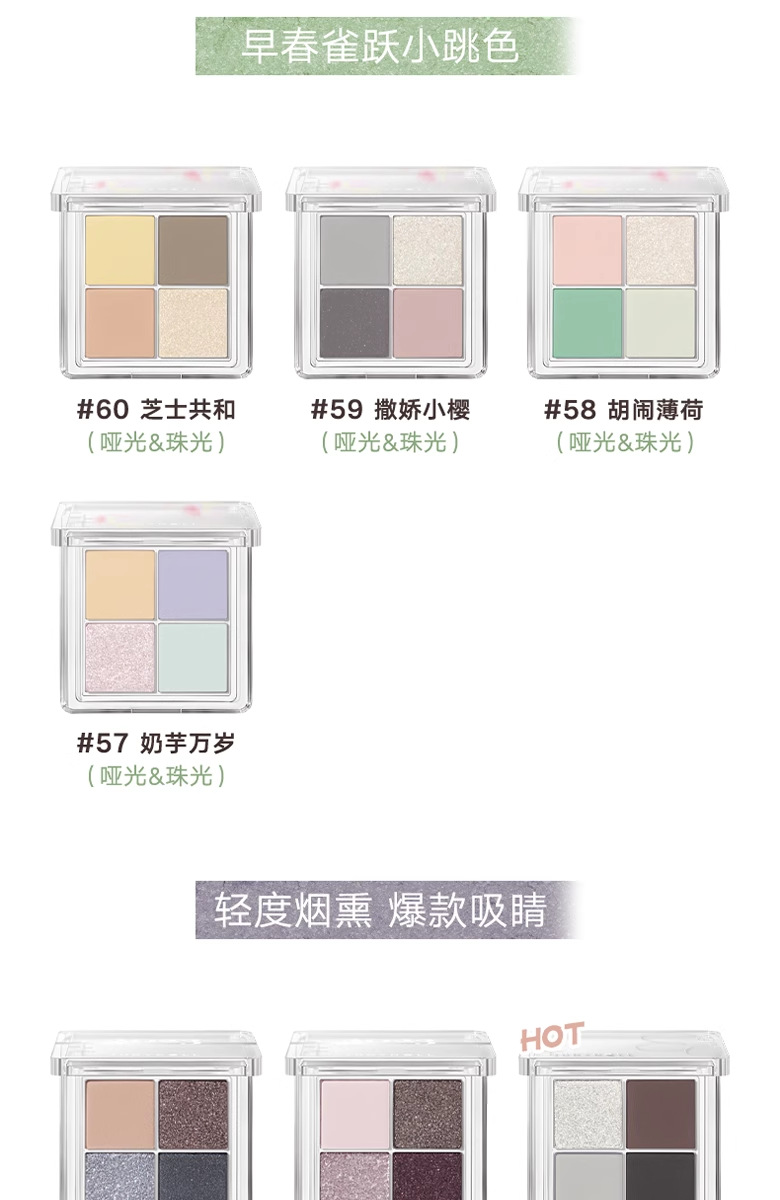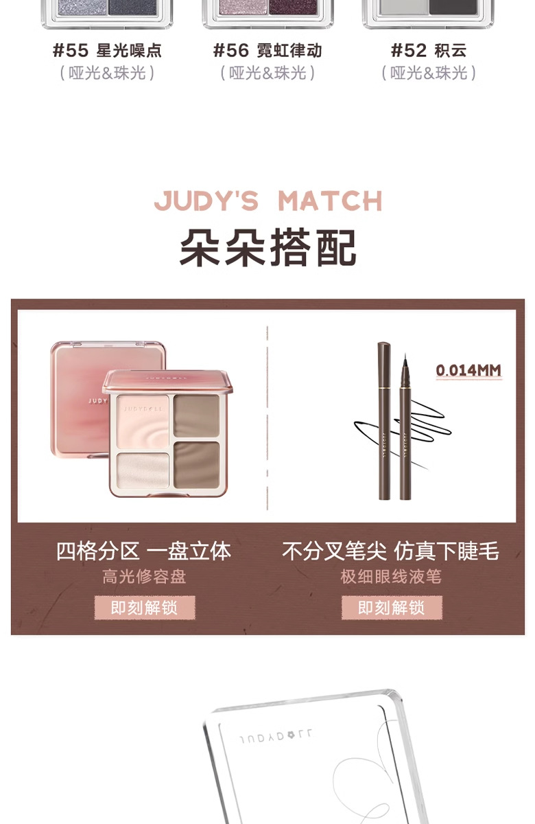 Bảng Phấn mắt bốn màu màu Judydoll màu cam trang điểm nhẹ hàng ngày màu đất phấn bóng cao tươi sáng đĩa nhiều màu ngọc trai mờ