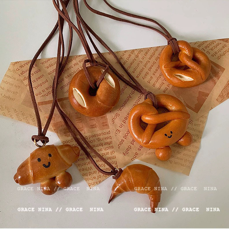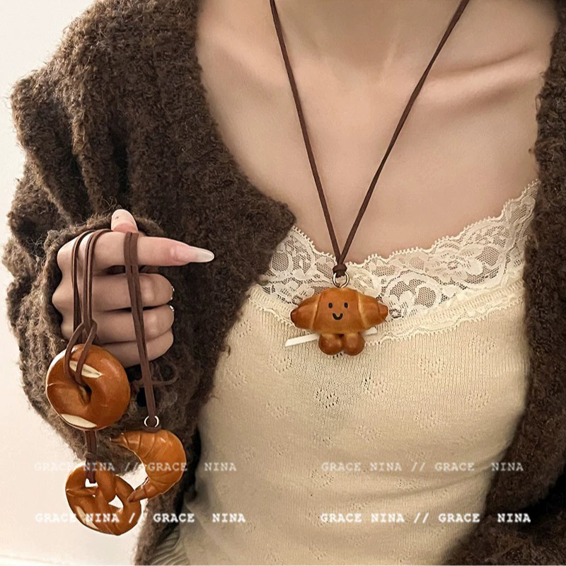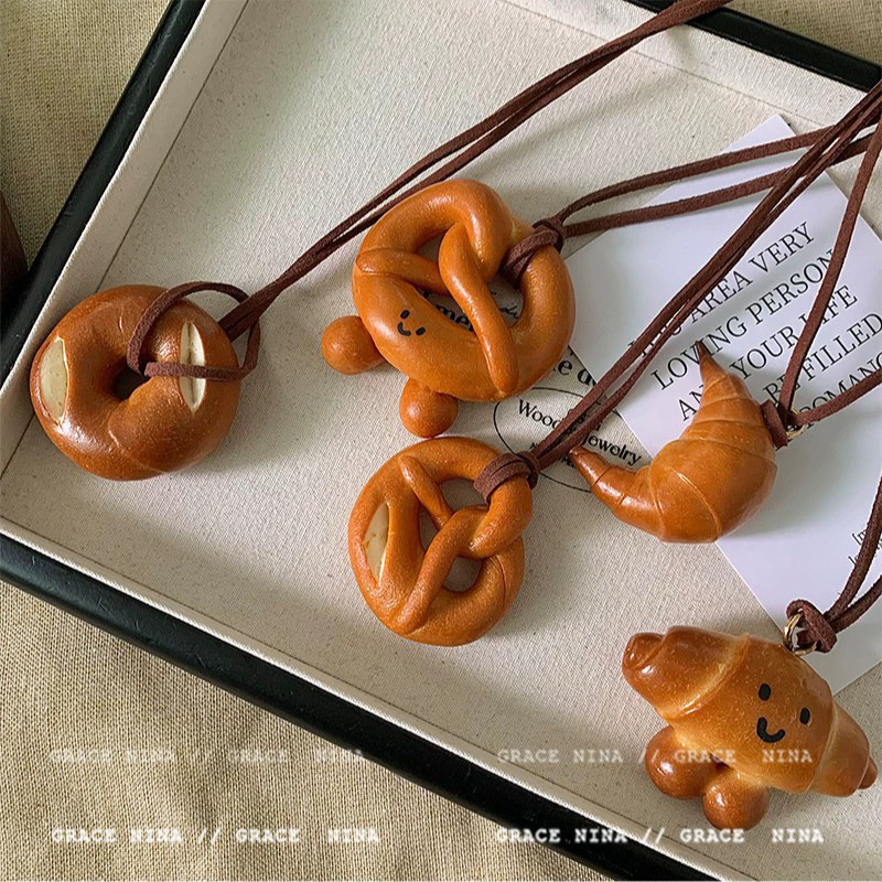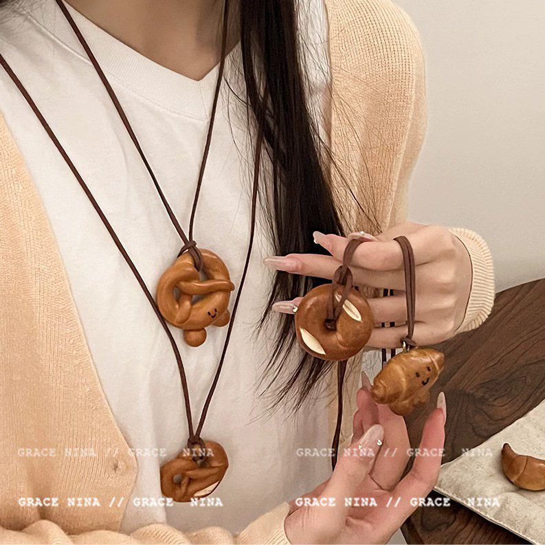 Bánh rán thủ công mô phỏng nước kiềm bánh mì Vòng cổ Áo len nữ dài chuỗi trang sức chuỗi cổ mặt dây chuyền phụ kiện Chuỗi xương đòn