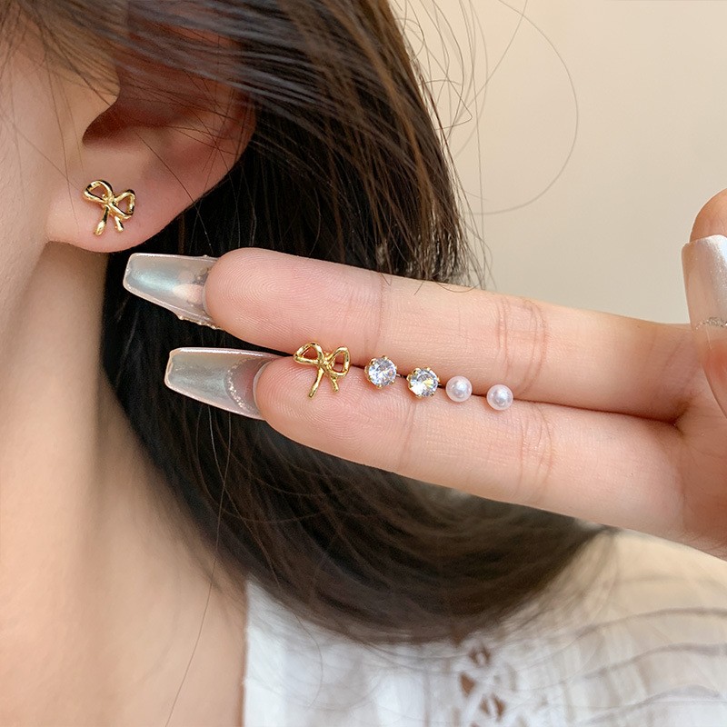 Bộ Khuyên tai Xỏ Khuyên Tai nhỏ đơn giản học sinh Dễ phối khí nơ bông tai Zircon Bộ ba bông tai bán buôn