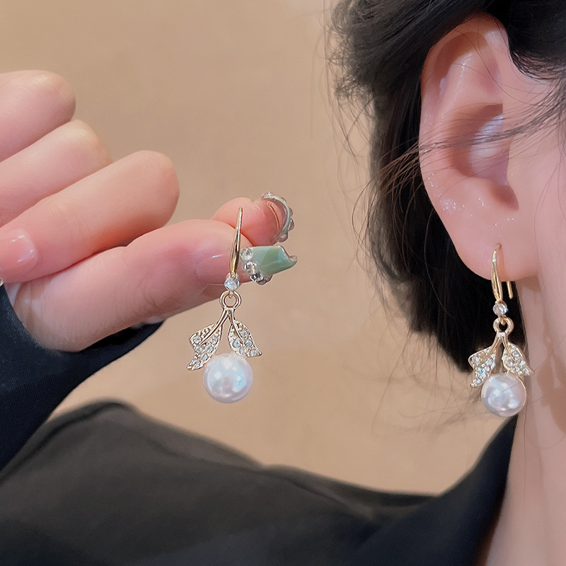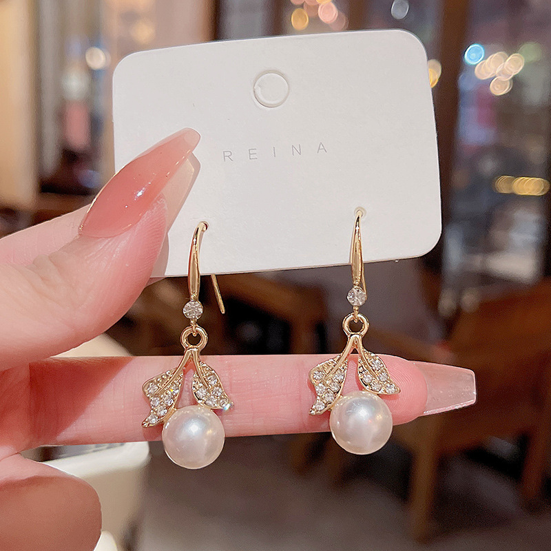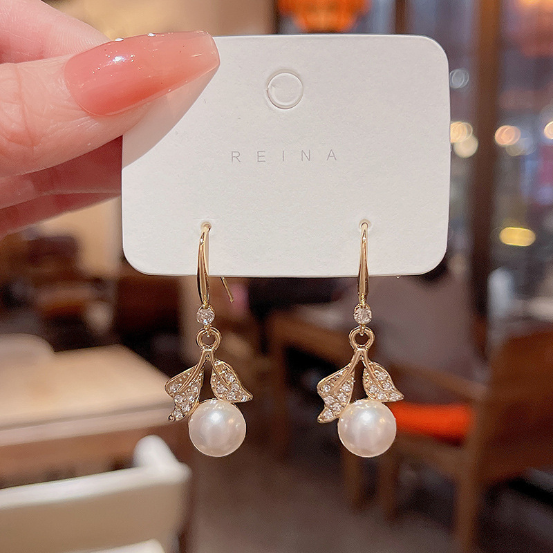 Bông tai dài Lá Kim Cương đầy đủ sang trọng Kim bạc S925 Bông tai ngọc trai khí chất dễ phối mẫu mới Hàn Quốc
