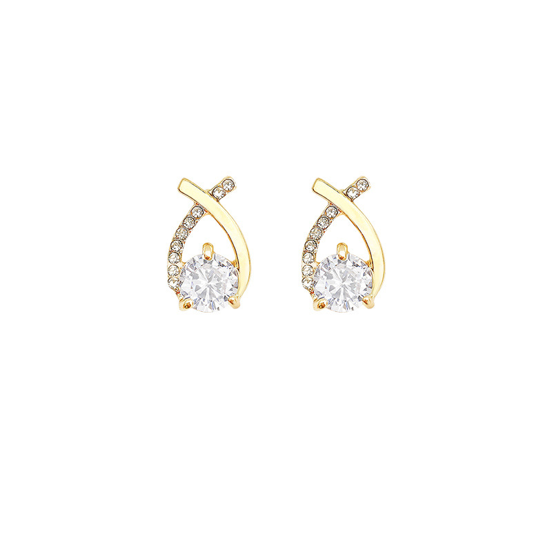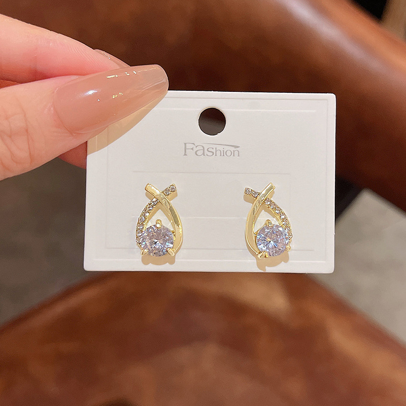 Bông tai đeo chéo Zircon tinh tế kim bạc S925 nữ Bông tai cùng kiểu dáng nhỏ lẻ sang trọng sành điệu Instagram bán buôn Bông tai