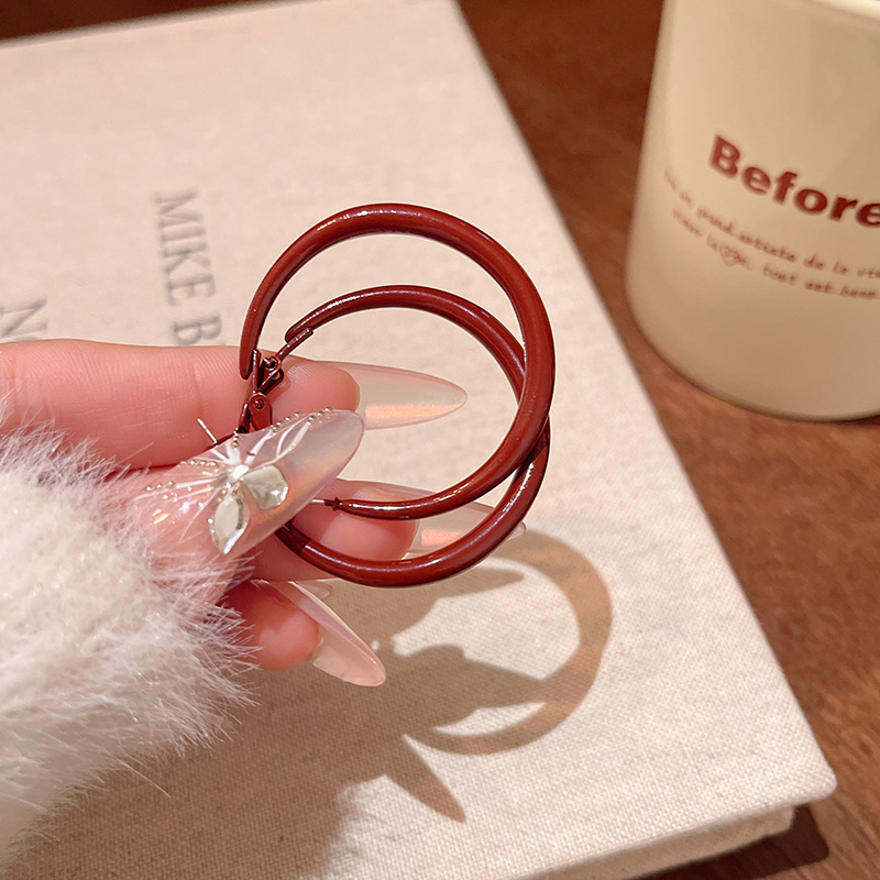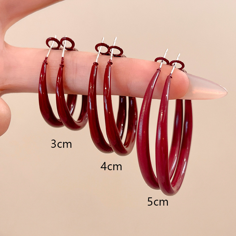 Bông tai đỏ Ancora phong cách Hồng Kông Bông tai hình tròn lớn đơn giản cổ điển sang trọng nhẹ phụ kiện bông tai cao cấp thích hợp bán buôn