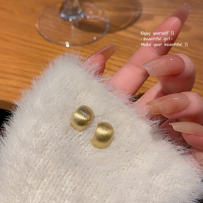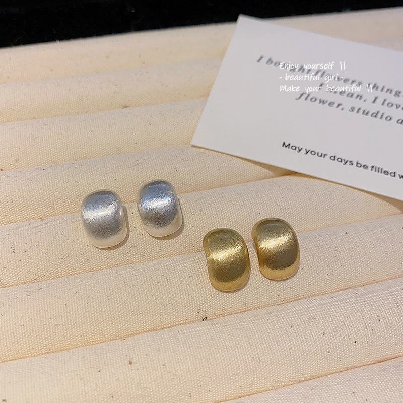 Bông tai hạt đậu cao cấp chải bóng Kim bạc S925 Bông Tai Bông tai hạt đậu mờ phong cách lạnh kiểu Pháp nữ