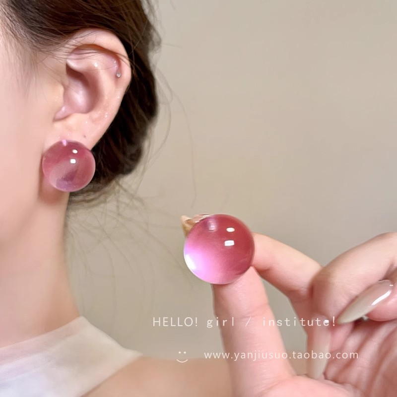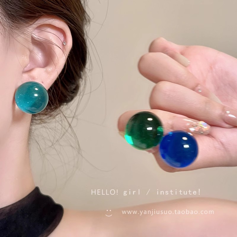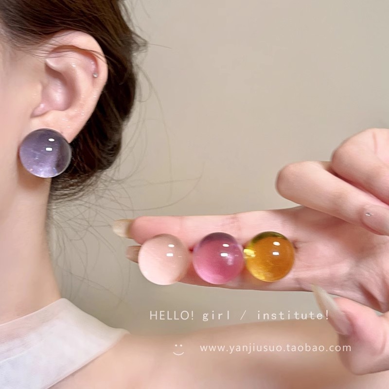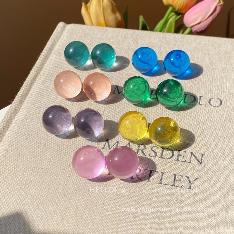 Bông tai hạt tròn thủy tinh trong suốt màu Dopamine Hoa tai hình học khí chất dễ phối đơn giản sang trọng nhỏ