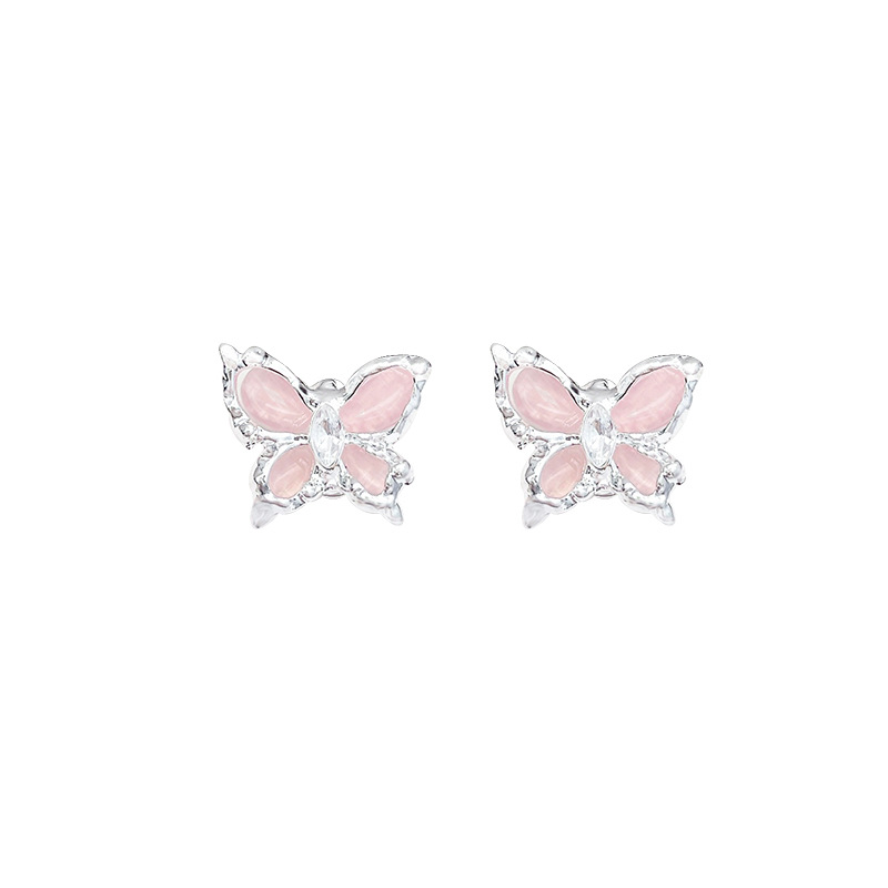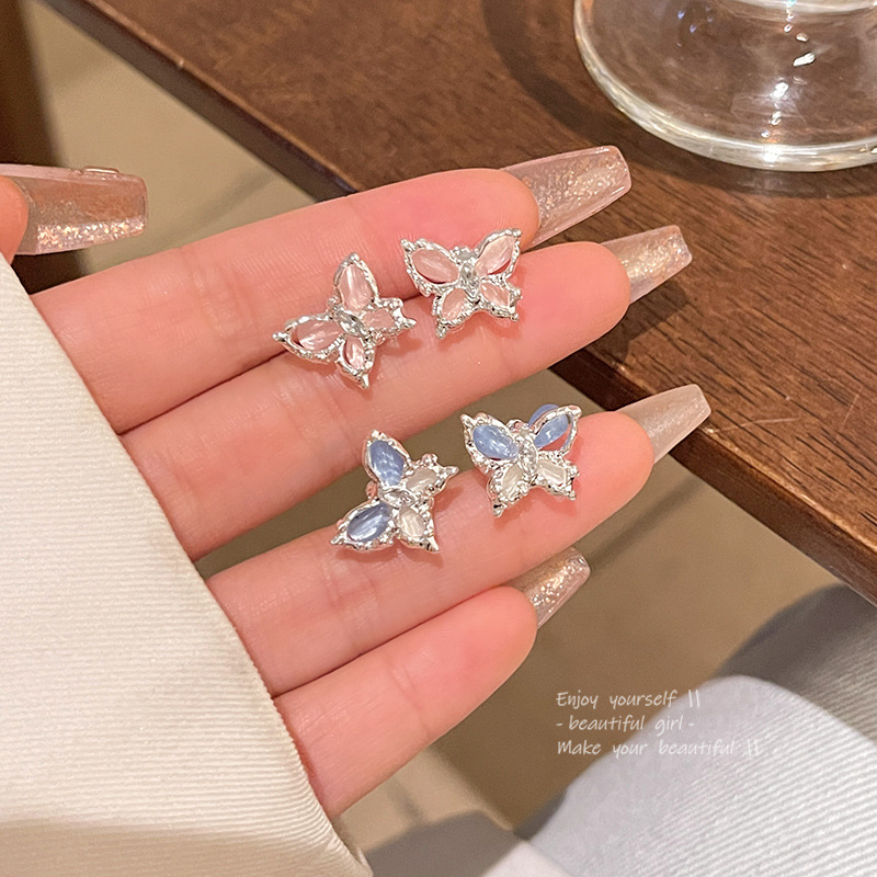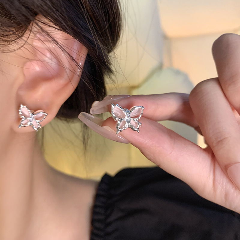 Bông tai hình bướm cao cấp sang trọng Kim bạc S925 hoa tai hình mèo màu hồng khí chất dễ phối tươi mới cho nữ
