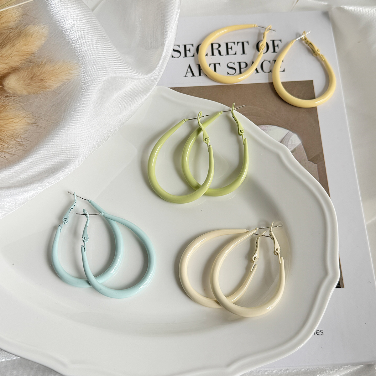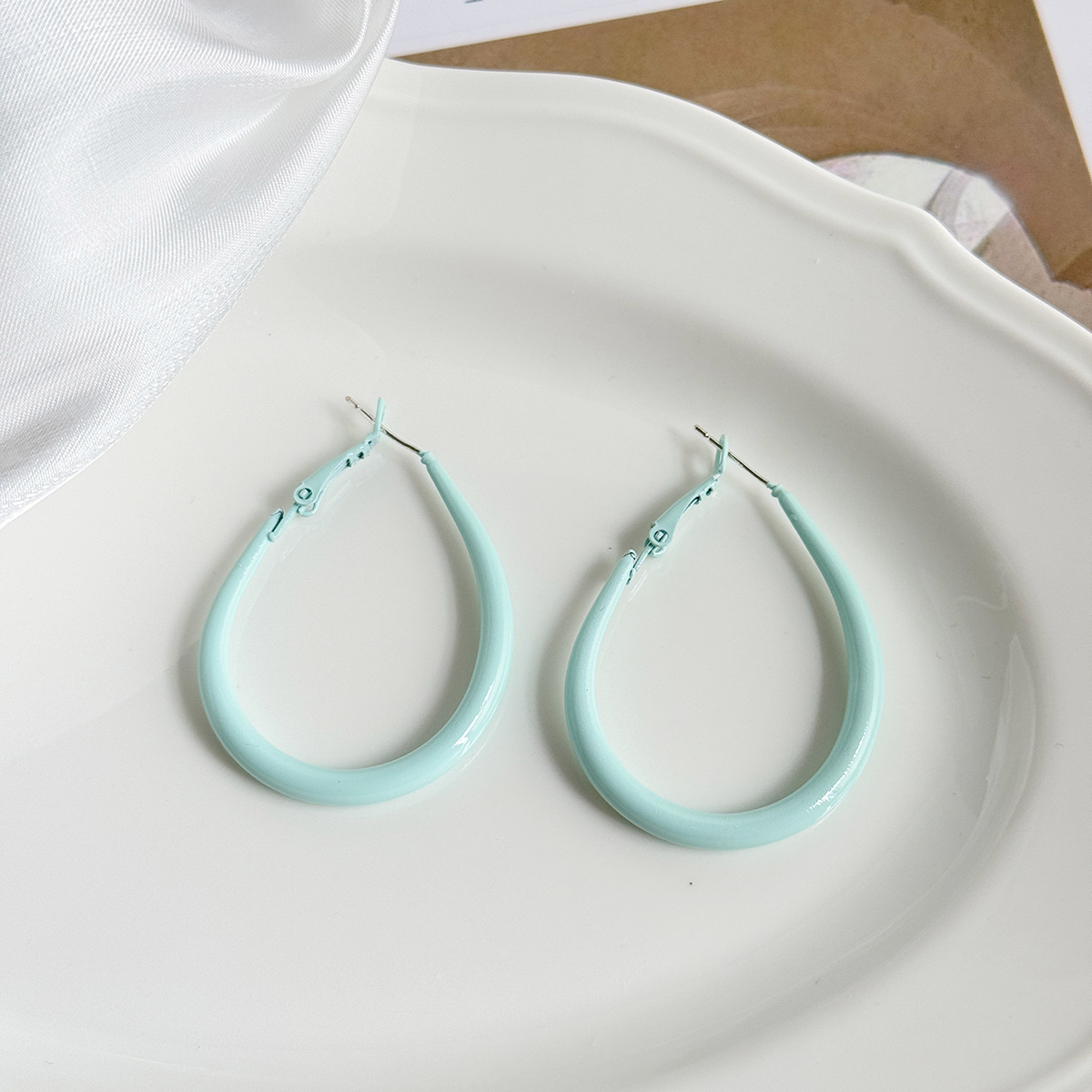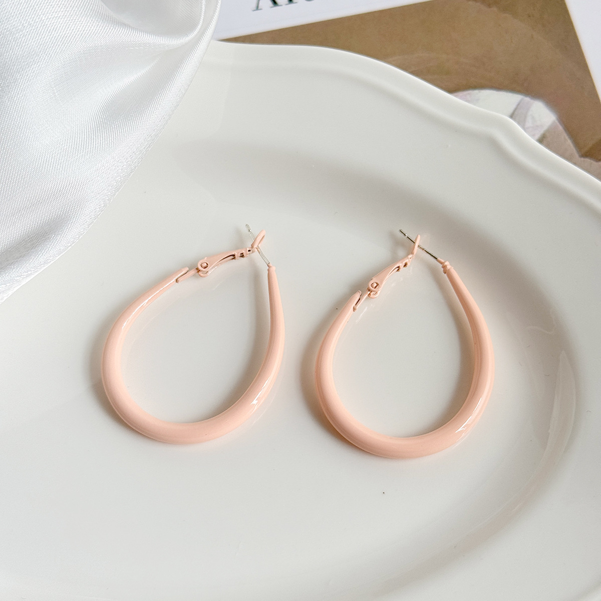 Bông tai hình hình giọt nước màu kem mùa hè cho nữ Bông tai hình học đơn giản ngọt ngào và dễ phối