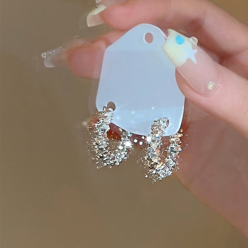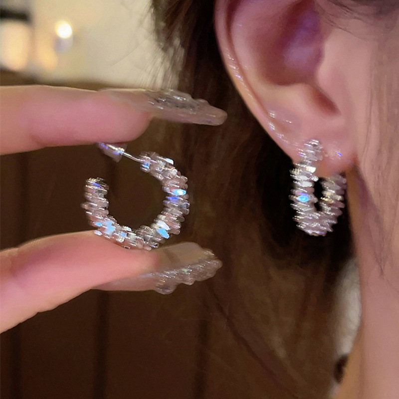 Bông tai kim Bạc S925, bông tai hình chữ C cao cấp, Chất lượng cao cấp, phong cách dễ phối sành điệu Instagram Nữ, Hoa tai bạc vỡ siêu lấp lánh khí chất