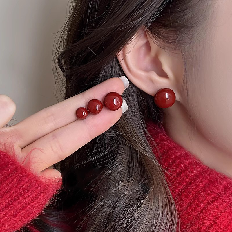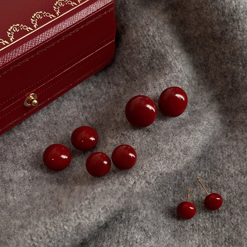Bông tai ngọc trai bánh bao hấp Màu Đỏ Ancora Hoa tai hạt đậu hạt bánh mì khí chất dễ phối đơn giản sang trọng cho nữ