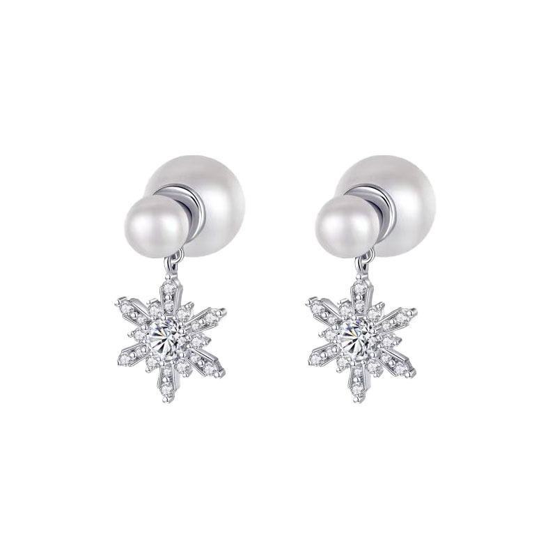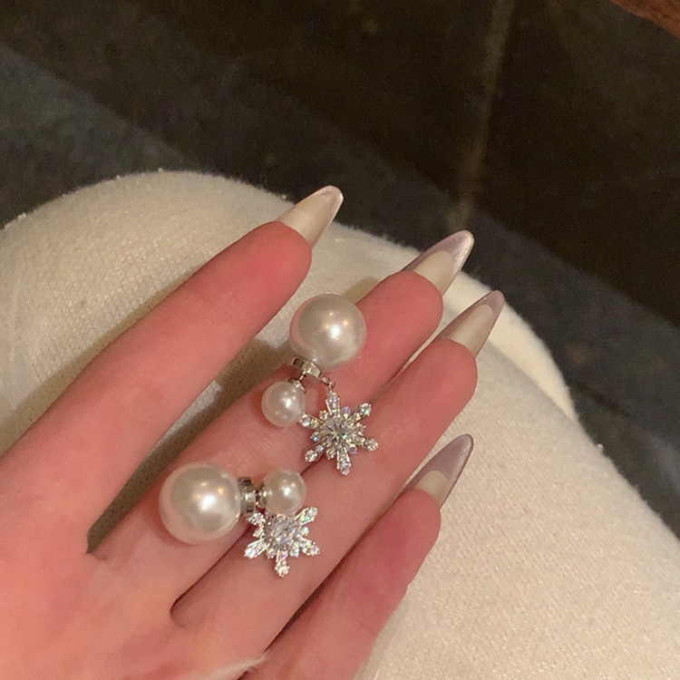Bông tai ngọc trai bông tuyết treo phía sau cảm giác thiết kế thích hợp sang trọng nhẹ hoa tai một kiểu hai kiểu cao cấp khí chất dễ phối cho nữ
