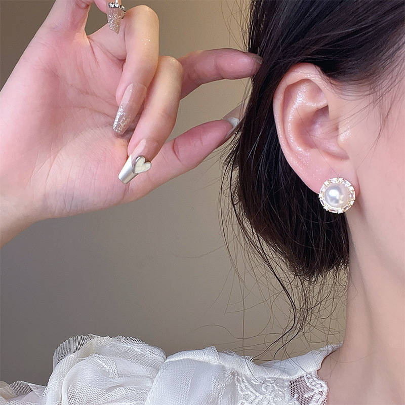 Bông tai ngọc trai đơn giản cao cấp sang trọng nhẹ Hoa tai bông tai Zircon hình học đa năng khí chất thời trang