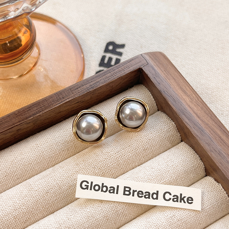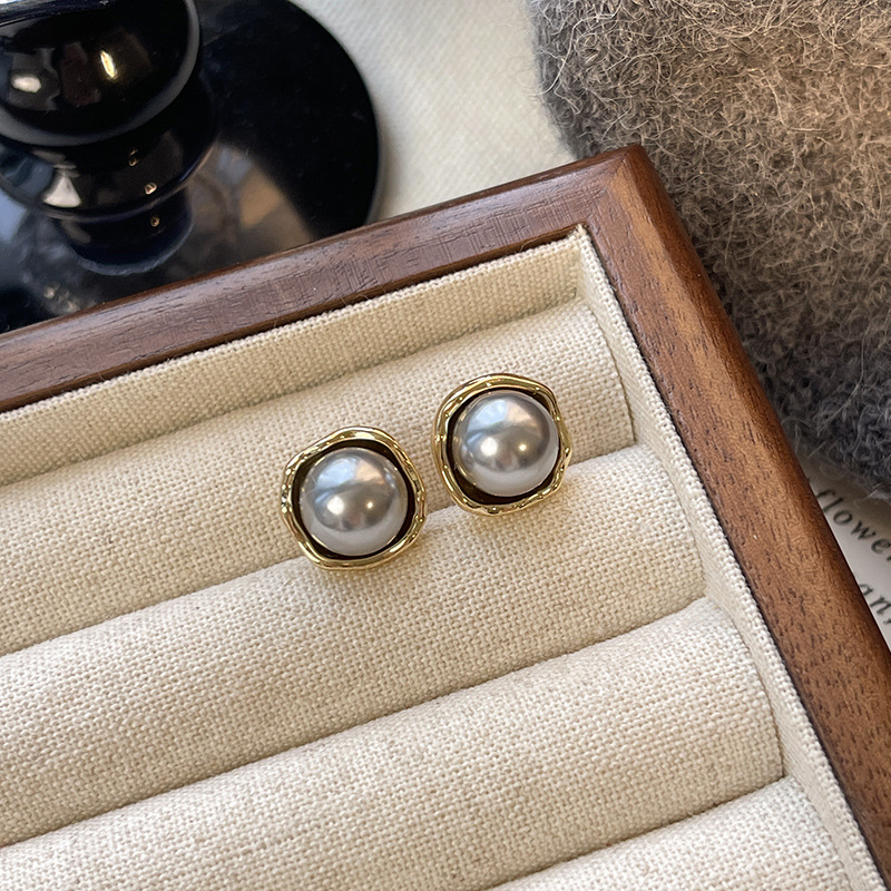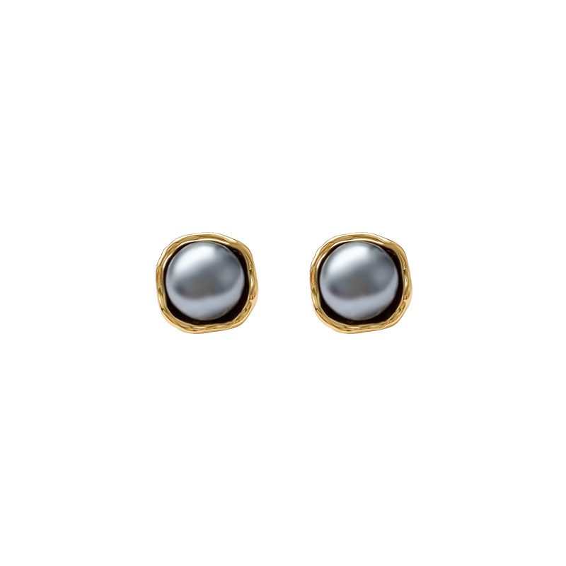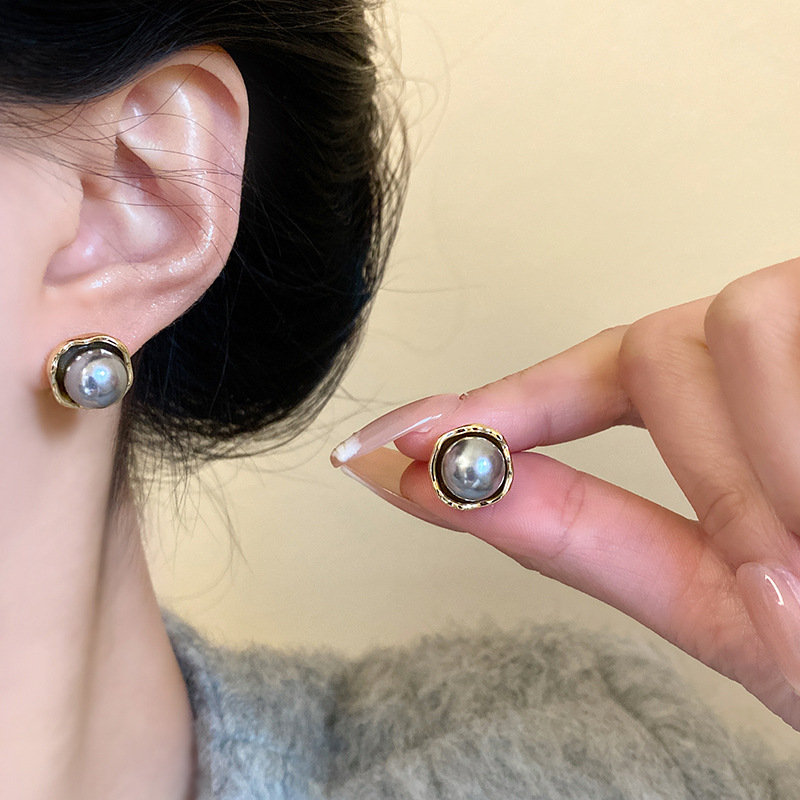 Bông tai ngọc trai màu xám bạc cổ điển kiểu Pháp đơn giản Kim bạc S925 Bông Tai Hoa Tai khí chất dễ phối đồ sang trọng cho nữ