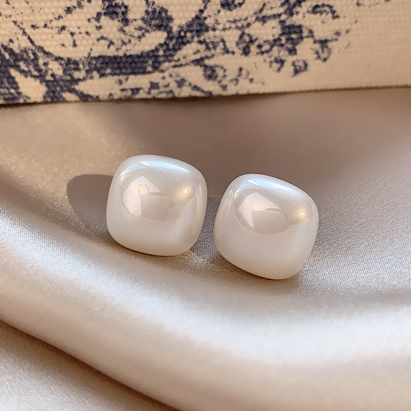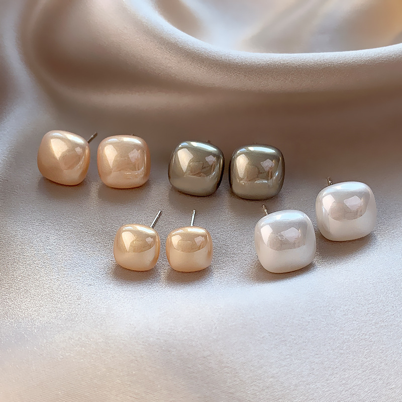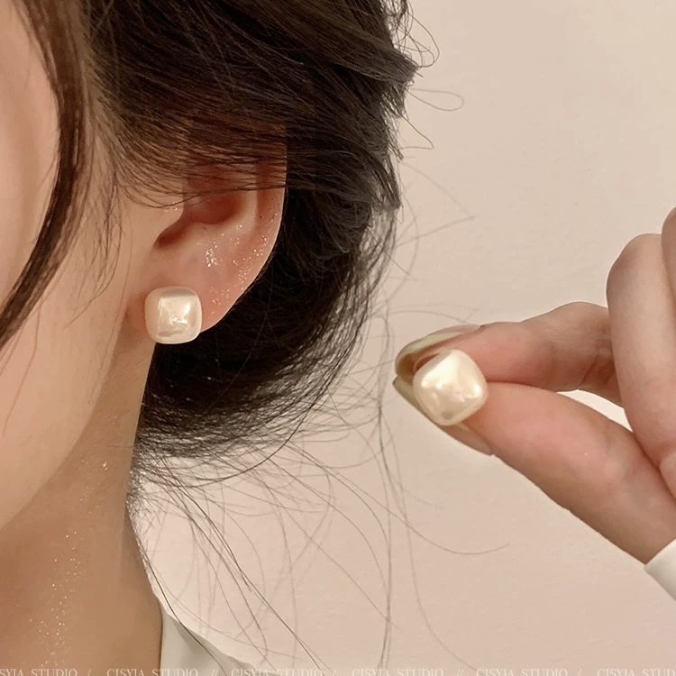 Bông tai ngọc trai vuông khí chất đơn giản sang trọng cho nữ Bông tai đường vuông dễ phối nhẹ nhàng trang sức tai cùng kiểu hot trên mạng