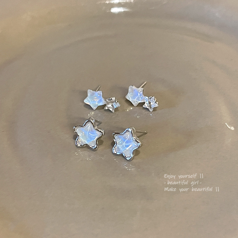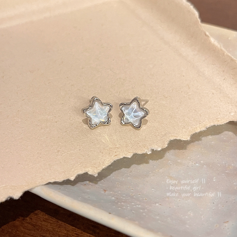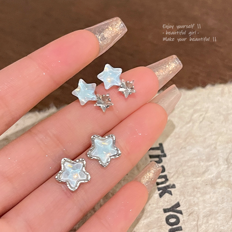 Bông tai ngôi sao năm cánh màu xanh mơ mộng kim bạc S925 nhỏ tươi mới Hoa tai ngôi sao cao cấp sang trọng nhẹ cho nữ
