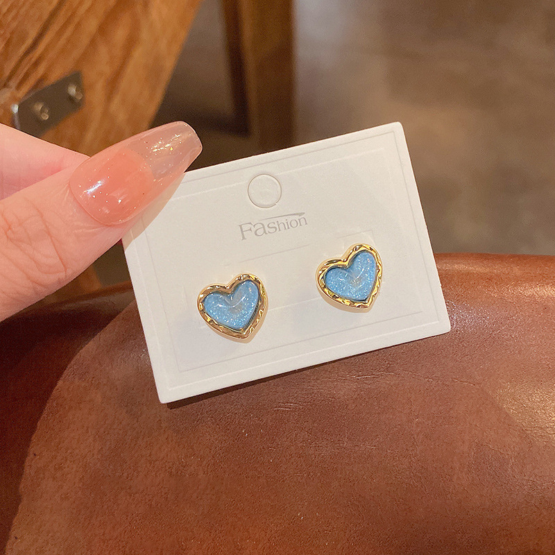 Bông Tai Tình Yêu Màu Xanh mơ mộng mẫu mới Hàn Quốc kim bạc S925 Bông tai nữ trang sức bông tai khí chất đơn giản sang trọng
