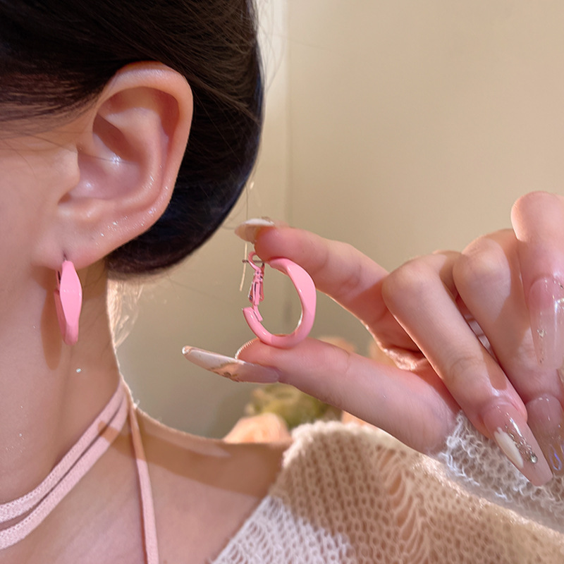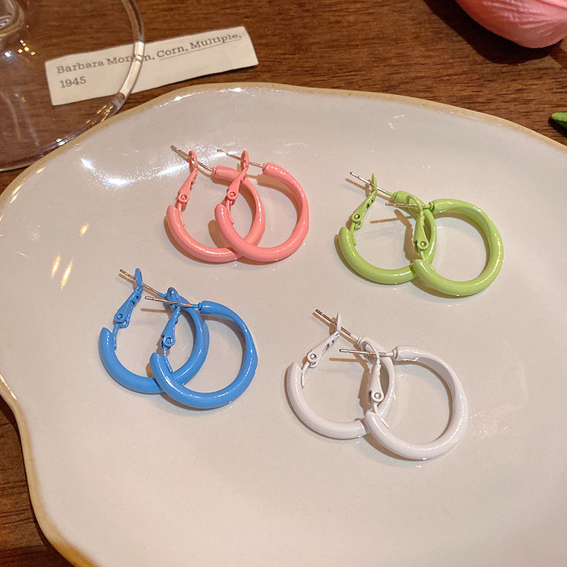 Bông tai vòng tròn tráng men giọt Dopamine nhiều màu sắc cho nữ Bông tai đơn giản khí chất dễ phối ngọt ngào trang sức bông tai cao cấp