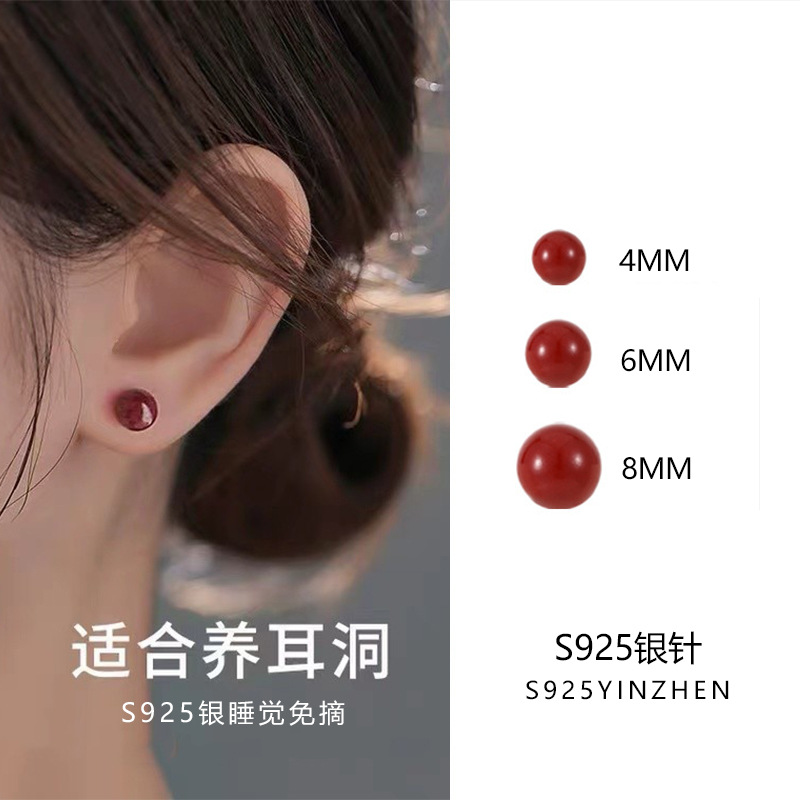 Bông tai đinh tán Chu Sa Đỏ 8mm |