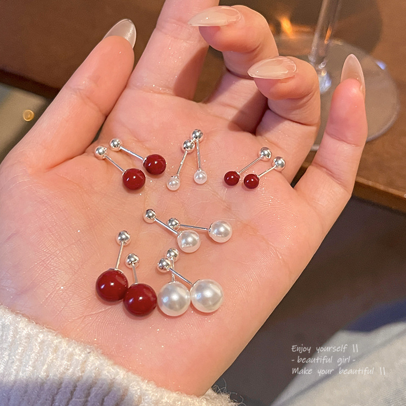 Bông tai Xỏ Khuyên Tai kim bạc S925 Bông Tai Xỏ Khuyên xương tai dễ phối đồ số ít cho nữ bông tai màu đỏ khí chất cao cấp