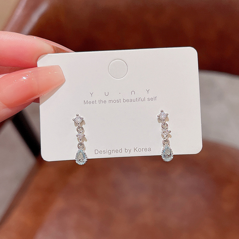 Bông tai Zircon hình giọt nước khí chất dễ phối đơn giản Kim bạc S925 Bông tai nữ trang sức hoa tai sang trọng nhẹ nhàng sành điệu Instagram