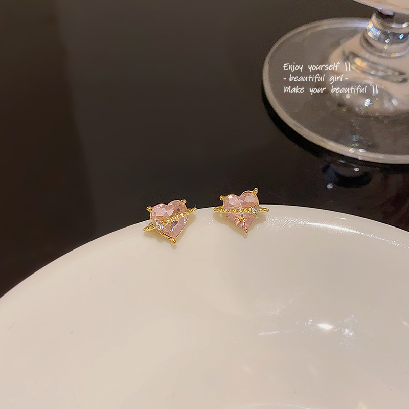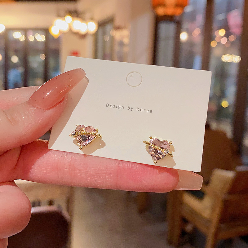 Bông tai Zircon tình yêu màu hồng tinh tế kim bạc S925 sang trọng nhẹ nhàng dành cho người nhỏ